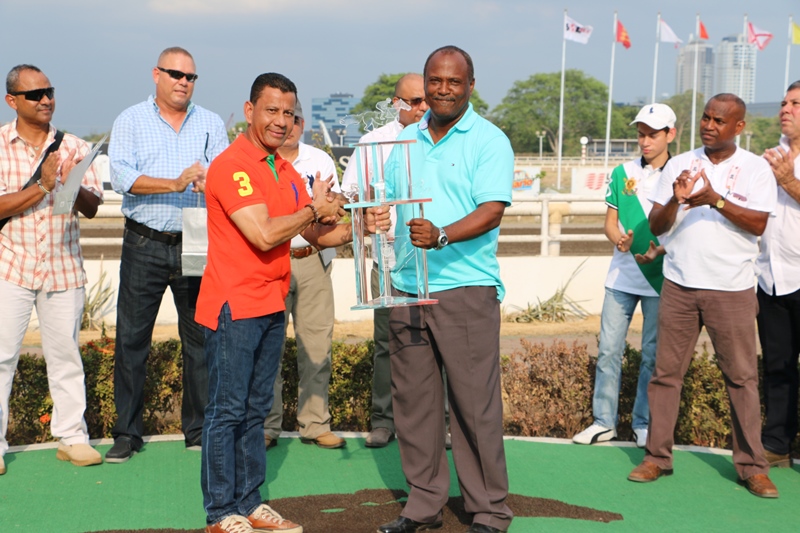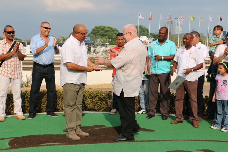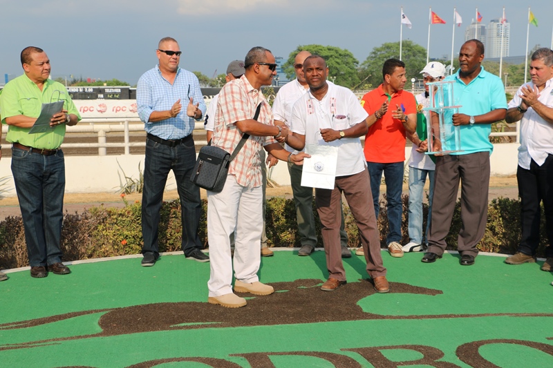 Un hándicap conmemorando los 79 aniversarios del “Día del Policía”, se llevó a cabo en el Hipódromo Presidente Remón Cantera este domingo 17 de abril. Félix Salgado jinete del caballo Bellamy Hope resultó triunfador de esta carrera en honor a la primera institución seguridad, siendo el Subdirector Operativo, Javier Castillo y el Subdirector Penitenciario David Ramos, a nombre del Director de la Policía Nacional, Omar Ariel Pinzón, los encargados de entregar reconocimientos al dueño Clarence González y al preparador Eligio caña. El Subdirector Javier Castillo agradeció a los jinetes, preparadores y dueños de caballos así como los administrados del Hipódromo, por este evento en honor a las unidades que día y noche arriesgan su vida por brindar seguridad a la ciudadanía. El Director de la Dirección Nacional de Operaciones, José Ríos también entregó premios a los participantes en esta jornada hípica. La orquesta de la Policía Nacional amenizó el evento interpretando diversos ritmos que incluso animo a los presentes a bailar y arrancó a plausos. Tremendo talento las de estas unidades policiales, quienes en cada interpretación dan su aporte. |