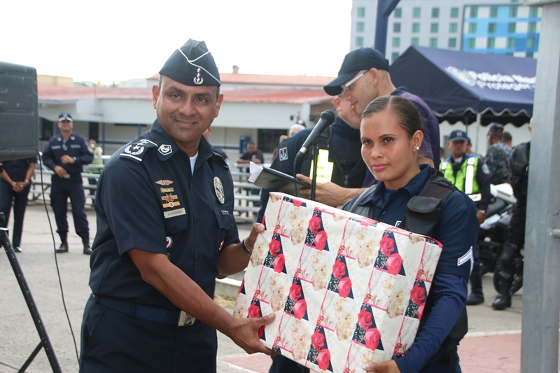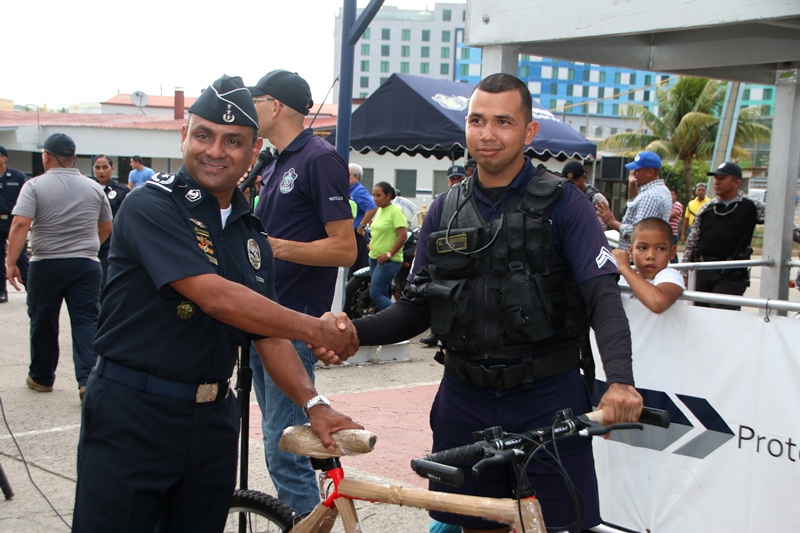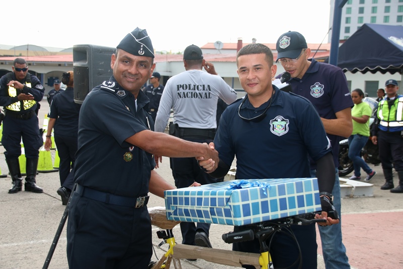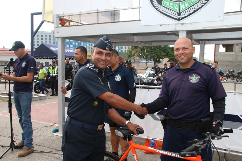 Las unidades de la Policía Nacional demostraron agilidad y destreza este lunes 18 de abril, en una competencia de motos y ciclistas que se llevó a cabo en el patio trasero de la institución policial ubicado en el corregimiento de Ancón, celebrando el 79 aniversario del “Día de la Policía”. El Director de la Policía Nacional, Omar Ariel Pinzón dedicó esta competencia al Sargento 2do. Roberto Ledezma quien falleció el viernes pasado cuando cumplía con su deber, para quien pidió a los presentes un minuto de silencio. “Se trata de una competencia amistosa, entre familiares porque todos los que aquí estamos somos familia, compañeros que cada día salimos a las calles a dar lo mejor de nosotros para el bien de la ciudadanía” destacó el jefe policial. El Cabo 2do. Luis Garrido de la 8va Zona de Policía resultó con el primer lugar en la categoría Motorizado RD 200 y la agente Mitzila Espinoza resultó ganadora en esta misma categoría;el Cabo 2do Adrián Almendra 15ava Zona Policial lo hizo en la categoría Ciclista, el Sargento Carlos Beitia como Motorizado Transito y el capitán Arturo NavarroMotorizado Lince. En la categoría Femenina Lince la ganó las agentes Luisa Bonilla y Katia Arrocha. Se trató de la “Segunda Competencia de Agilidad y Destreza” en las que participaron ochenta unidades que conforman las fuerzas Motorizadas Linces, Unidades de la Dirección Nacional de Operaciones del Tránsito y Ciclistas y de la Unidad de Policía Comunitario (UPC) de Curundú. A todos los ganadores y participantes se entregaron premios e incluso a la agente Briseida Barrios de la Unidad Preventiva Comunitaria (UPC) de Curundú, se le otorgó un presente por su participación. El Jefe de la Dirección Nacional de Operaciones del Tránsito, comisionado Javier Fanuco detalló que con este tipo de actividades las unidades resaltan sus habilidad y destrezas que son utilizadas en el ejercicio de su trabajo diario donde se prearan para enfrentar los riesgos al manejar este tipo de equipo, ya que con la experiencia de esta competencia pueden hacer más seguro su trabajo. La actividad inició con la participación de los motorizados, quienes pusieron a prueba sus habilidades y desplazamiento en el circuito cerrado con conos en la pista. Posteriormente, inició la carrera de ciclistas, donde se sintió la adrenalina por parte de quienes demostraron ser los mejores sobre dos ruedas. |
