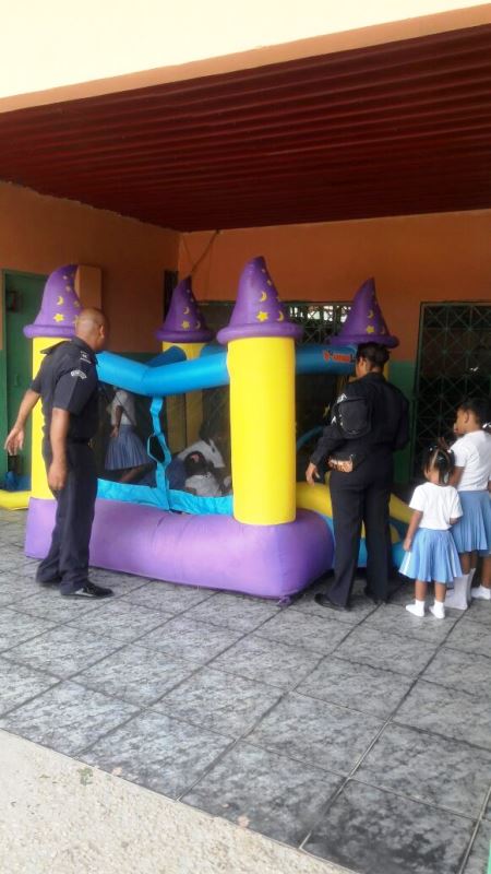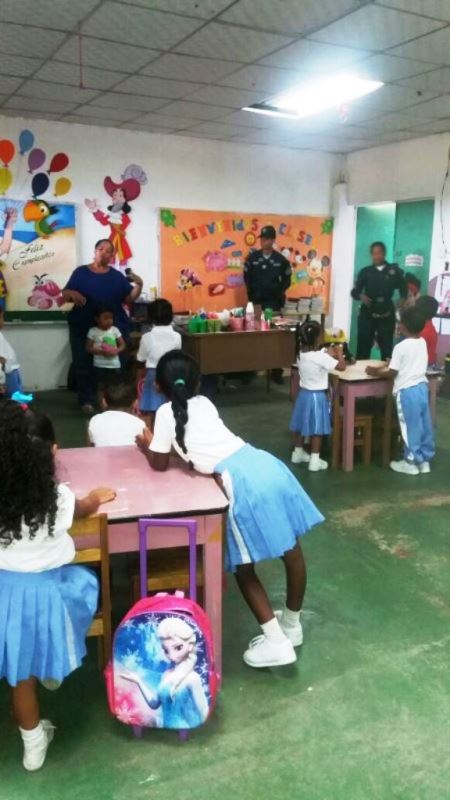 Unidades de la subestación policial de Sabanitas en la provincia de Colón compartieron la mañana de este martes 19 de abril, con niños y niñas que estudian en la escuela Carita de Ángel ubicada en el corregimiento de Puerto Pilón. La unidades sorprendieron desde temprano a los niños con los “brinca brinca”, mientras que las unidades “Linces” los llevaban de paseo, entregaban golosinas. En tanto, se les dictó una charla sobre el trabajo de los policías. Las maestras de la escuela agradecieron a la Policía Nacional por el momento de felicidad que le llevaron a los pequeños que disfrutaron al máximo la convivencia.