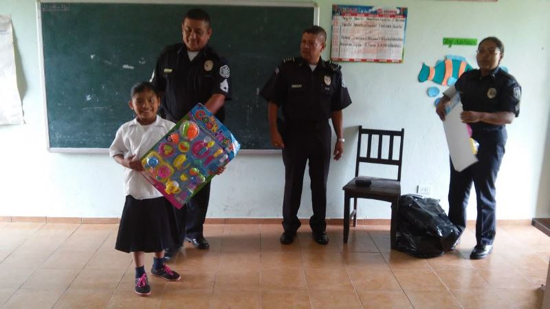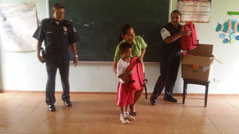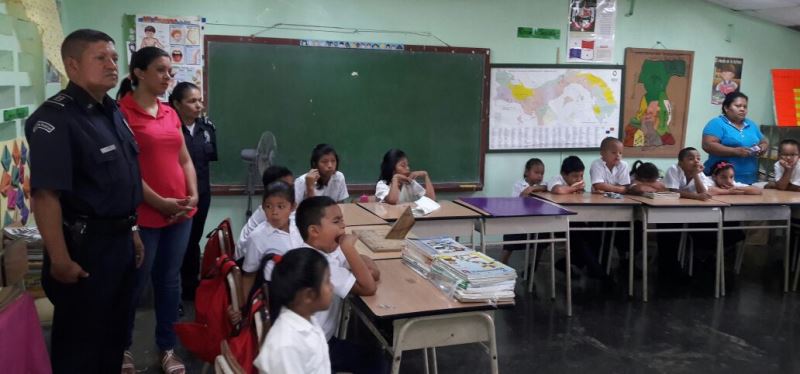 Con la entrega de útiles escolares, juguetes y un aire acondicionado, unidades de la 4ta. Zona Policial de Chiriquí, de servicios en el distrito de Bugaba, llevaron alegría a las Escuelas San Miguel del Yuco, en el sector de la Concepción y La Colonia, en el corregimiento de Sortova. El Subcomisionado Alejandro Urriola, Encargado del área “C” de Bugaba, manifestó que es un orgullo ver una sonrisa de emoción en el rostro de estos niños, mientras recibían los regalos dados por los efectivos policiales. “Se les dio a los estudiantes un brindis acompañado de dulces y helados, así como mochilas con útiles escolares, juguetes y piñatas, acotó el Subcomisionado Urriola. |