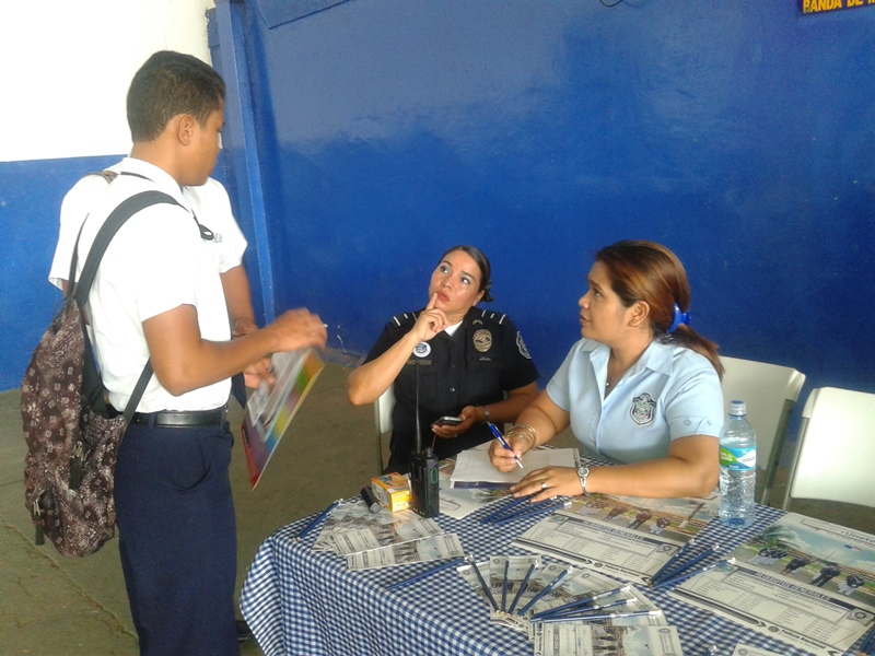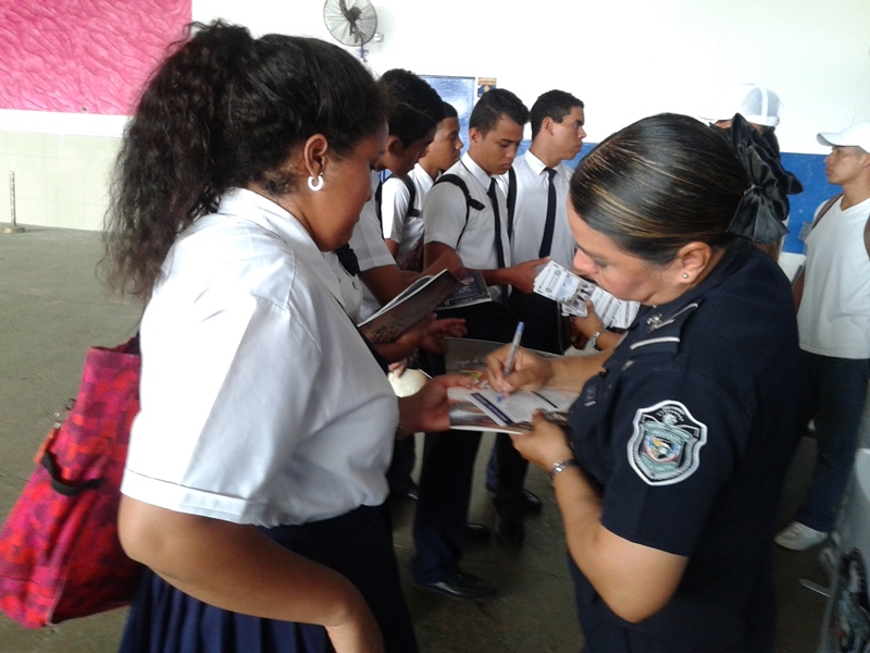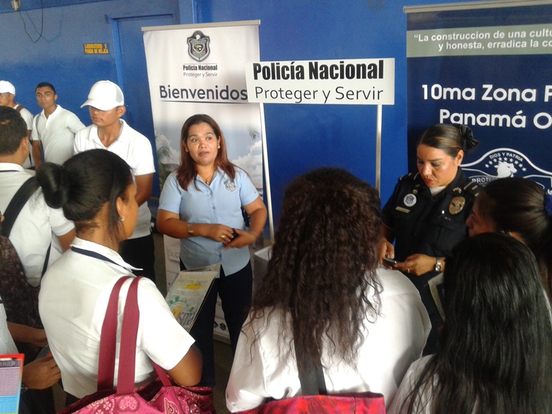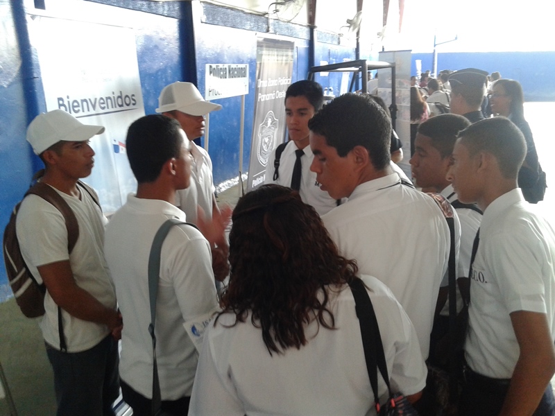 En el Colegio Moisés Castillo Ocaña de La Chorrera, se realizó una “Feria Universitaria” con el objetivo de brindarle a los estudiantes que cursan el último año de secundaria toda la orientación en relación a las diferentes carreras universitarias y les permita tomar una decisión madura sobre sus estudios superiores. En ella participaron las universidades públicas y privadas al igual que las unidades policiales del Departamento de Selección y Reclutamiento de nuestra institución. El Subteniente F. Guerra y la Subteniente Kathia Valdez de La Chorrera atendieron a la gran cantidad de jóvenes que mostraron su interés en la Licenciatura de administración policial y Técnico Superior en Seguridad Publica y así poder ingresar a nuestras filas. A los jóvenes se le dio la orientación en relación a los beneficios que tendrán al inscribirse para esta carrera y haciéndoles la observación del que ingresa a esta profesión lo hace a sabiendas de que esta involucra entrega, compromiso, dedicación y mucho sacrificio, pero que es recompensado ya que lo haces en beneficio de la comunidad. |