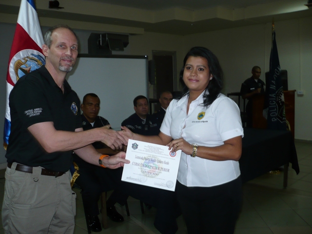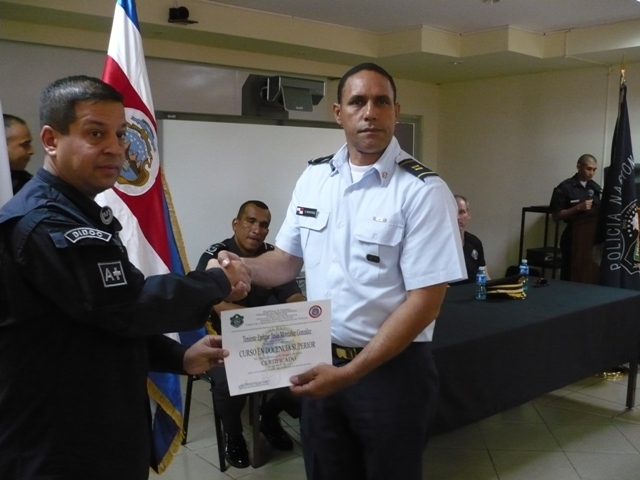 La Policía Nacional a través de la Dirección Nacional de Docencia, culminó este viernes 22 de abril los cursos de Docencia Superior, de Seguridad Ciudadana y la homologación al Técnico Superior en Seguridad Pública, donde unos 7 miembros de la Fuerza Pública de Costa Rica recibieron esta capacitación. La delegación tica junto a un grupo de oficiales de la Policía Nacional, del Servicio Nacional Aeronaval (Senan), del Servicio de Protección Institucional (SPI), del Servicio Nacional de Migración (SNM) y del Sistema Nacional de Protección Civil (Sinaproc), recibieron sus diplomas de culminación el cual tuvo una duración de 100 horas. En la actividad participaron el Comisionado Luis Lacayo, director de la Escuela de Policía de la Fuerza Pública de Costa Rica, el Comisionado Jorge Escobar, director nacional de Docencia en representación del Director de la Policía Nacional Omar Ariel Pinzón Marín. Ambos funcionarios tuvieron palabras de elogio para la educación que está desarrollando la Policía Nacional y su cuerpo de docentes quienes se han profesionalizados para alcanzar los altos estándares de calidad a fin de que sea las escuelas de formación de policías las responsables de capacitar al resto de la fuerza pública de Centro América.