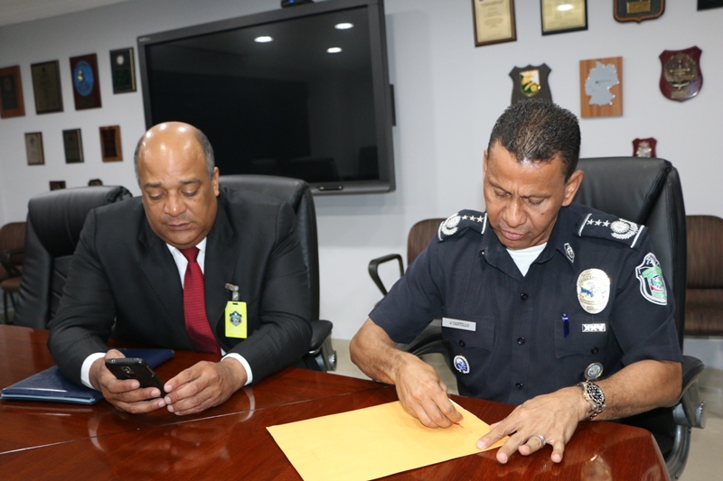 El Director General (Encargado) de la Policía Nacional, Javier Castillo, recibió de manos del Vicepresidente Asistente del Banco General, Jorge Sandoval obsequios para las unidades que participan en el concurso “Policía Ejemplar”, en un acto que se llevó a cabo en el Salón Azul de la Policía Nacional, corregimiento de Ancón. El Comisionado Castillo agradeció al banco General tan importante obsequio para estas unidades destacadas por su labor en sus respectivas zonas policiales. Con este concurso que se celebrará el próximo 3 de mayo, en el Centro de Convenciones Atlapa, finaliza la conmemoración de los 79 años del Día del Policía. |