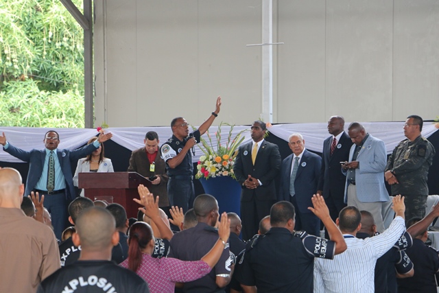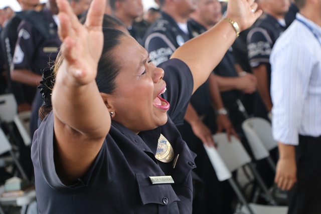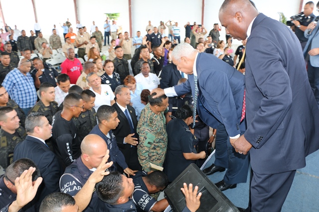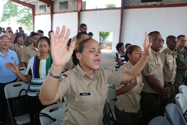 Uno de los máximos exponentes la música cristiana en español, Roberto Orellana, arribó a suelo panameño este miércoles 27 de abril, para ministrar con sus dones, entre ellos el de la música cantada, a más de 300 uniformados de la fuerza Pública de Panamá, pertenecientes a la Policía Nacional (PN), Servicio de Protección Institucional (SPI), Servicio Nacional de Fronteras (SENAFRONT), Servicio Nacional Aeronaval (SENAN). Los miembros de la Fuerza Pública se dieron cita dentro de las instalaciones de su sede ubicada en el corregimiento de Ancón, siendo las festividades del Día del Policía el motivo por el cual se desarrolló este Concierto de Adoración y Gratitud. En la actividad estuvo presente el comisionado Willington Zambrano, Director Nacional de Inspectoría General de la Policía Nacional, pastores de la Alianza Evangélica de Panamá, entre ellos el reverendo Rolando Hernández y el Apóstol Manuel A. Ruiz, quien tuvo participación dando una corta exhortación de la palabra de Dios a los uniformados, e imponiendo sus manos sobre los presentes. En tanto, Roberto Orellana con su característica humildad y sencillez se presentó y cantó, logrando calar en el alma de la audiencia, quienes reflejaban alegría, paz y liberación, derramando lágrimas al adorar al Todopoderoso. Con este tipo de actividades la Policía Nacional da lugar a que personas ungidas de dones y talentos por Dios los puedan impartir a los uniformados. |