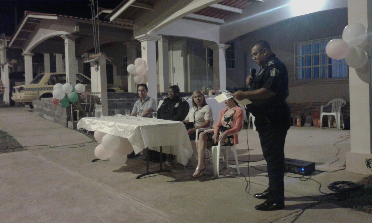 Con el acompañamiento de la murga de la Policía Nacional, el Comisionado Luis Navarro inauguró este jueves 28 de abril el programa de Seguridad Ciudadana “Vecinos Vigilantes” no. 86 en el distrito de Arraiján. Esta vez, la ceremonia se realizó en la barriada Villas de Oro, localizada en Nuevo Chorrillo, corregimiento de Cerro Silvestre. La joven Paola Tapia, Presidenta del comité de Vecinos Vigilantes agradeció a la Policía Nacional la orientación de las medidas de seguridad que deben adoptar en dentro y fuera de sus viviendas que en días pasados fueran dictadas por personal de Seguridad Ciudadana. El Comisionado Luis Navarro, Jefe de la Treceava Zona Policial de Arraiján felicitó a las 25 nuevas familias que se unen a los programas de prevención de la Policía de la Policía Nacional. El acto inaugural contó con la participación del Licenciado Alexis González, Presidente distrital de Vecinos Vigilantes quien durante su intervención habló sobre los resultados positivos que han experimentado desde la implementación de los programas en distintos sectores del distrito.