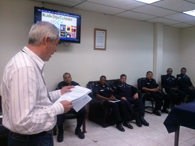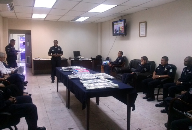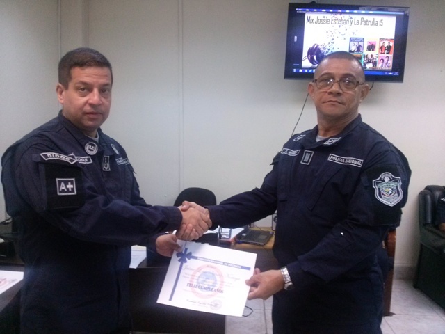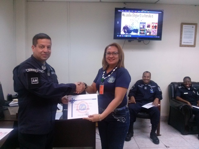 Un grupo de colaboradores de la Dirección Nacional de Docencia, de la Policía Nacional, hicieron un alto en su trabajo para realizar un pequeño agasajo por el día de la Secretaria y del Jefe. Un pequeño programa permitió que los colaboradores organizaran la actividad y se procediera a entregarle un obsequio al Director Nacional de Docencia, Comisionado Jorge Luis Escobar, por su liderazgo al frente de esta dirección. El pequeño ágape sirvió para que se recordara el cumpleaños de las unidades correspondientes al mes de enero, febrero, marzo y abril respectivamente, a quienes se les entregó certificados de regalos para hacerlo efectivo en un almacén de la localidad y certificados de reconocimiento. El comisionado Escobar tuvo palabras de elogio para las unidades que laboran en esa dirección ya que sin ese recurso humano la gestión que se realiza para beneficio de todas las unidades de Policía no se podría llevar a feliz término.