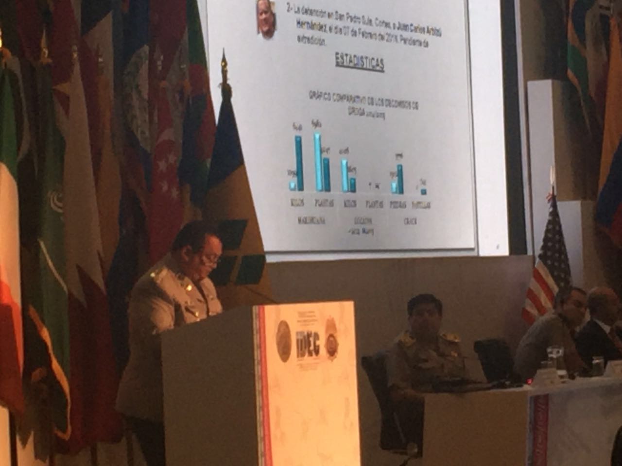 Panamá, 29 de abril de 2016. La lucha contra el narcotráfico y el crimen organizado en la región Centro y Norteamérica, será presidida por Panamá, decisión tomada en el marco de la XXXIII Conferencia Internacional para el Control de Drogas (IDEC) que se llevó a cabo del 26 al 28 de abril, en Lima, Perú. En este encuentro donde participaron más de 118 representantes de naciones y 304 invitados internacionales, fue elegido el Director General de la Policía Nacional, Omar Ariel Pinzón Marín, como Presidente de este grupo que encabezará la lucha contra estas agrupaciones criminales que tanto daño le hacen a nuestras sociedades y sobre todo, a los jóvenes. “Esta designación es muy importante para nuestro país, ya que se reconoce el gran trabajo que se ha hecho como nación para frenar a estos grupos delincuenciales, donde cada uno de los estamentos de seguridad y en un trabajo en conjunto, hemos refirmado nuestro compromiso para frenar los hechos delictivos derivados de esta actividad ilícita”, destacó Pinzón. Sobre la reunión internacional de IDEC que concluyó este viernes 29 de abril, el jefe policial dijo que se coordinaron acciones conjuntas e intercambio de información con los representantes de los Estados que asistieron. “Participamos en reuniones multilaterales con Perú, Colombia, Ecuador, Argentina, Chile y Uruguay. Además, hubo encuentros bilaterales en la que se conversó con Colombia, Ecuador y Perú, para coordinar acciones contra el narcotráfico. En esta reunión, el Director Omar Pinzón se reunió con el administrador para el Control de Drogas del Departamento de Justicia de Estados Unidos, Chuck Rosenberg. |
