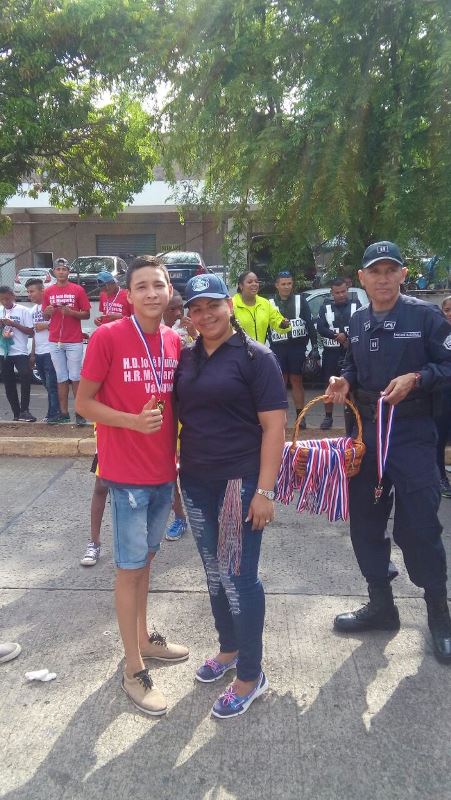 Miembros juramentados y no juramentados de la 15va Zona de Policía Este, realizaron diferentes actividades para finalizar junto con la comunidad el mes del policía. Este evento inició en la rotonda de Ciudad Radial y finalizando en la sede de la Zona de Policía en Don Bosco, donde participaron niños, jóvenes y adultos quienes residen en diferentes sectores de esta zona. Esta actividad estuvo presidida por el comisionado Jorge Miranda, jefe de la zona policial, unidades de la Dirección Nacional de Operaciones de Tránsito, quienes brindaron charlas a los presentes sobre las medidas de seguridad que deben tomar cuando se encuentran en las vías, también la Policía de Niñez y Adolescencia habló sobre los diferentes programas de seguridad que llevan a cabo. Para el comisionado Jorge Miranda, es muy importante la convivencia con la comunidad, por lo que exhortó a los presentes continuar con estos eventos deportivos, en beneficio de la salud y la integración familiar. |