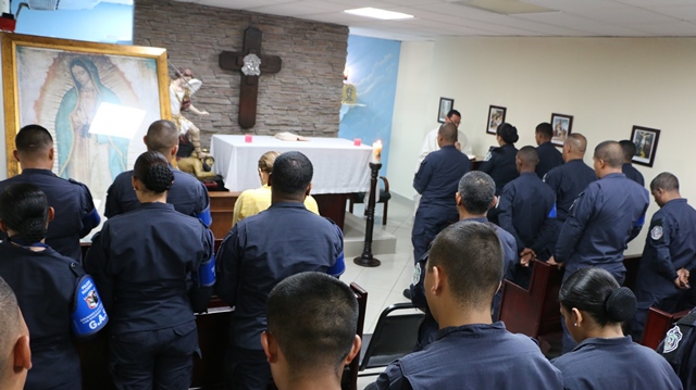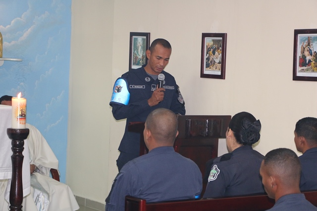 “Gloria al Padre, y al Hijo, y al Espíritu Santo, como era en el principio, ahora y siempre, y por los siglos de los siglos”, esta y algunas otras oraciones elevaron a Dios los miembros de la Policía Nacional, pertenecientes al Grupo de Apoyo al Servicio (G.A.S.) y Unidad de Control de Multitudes (U.C.M.) Los uniformados celebraron una misa transmitida por la Radio María, en la que el capellán de la Policía Nacional, Edgar Flores, destacó la importancia de la evidencia del Espíritu Santo en el diario vivir del policía, quien denota amor, alegría, paz, paciencia, afabilidad, bondad, fidelidad, mansedumbre, dominio propio. En tanto elogió el sacrificio de las unidades que dan “la milla extra” al prestar su ayuda a situaciones y en lugares en los que la mayoría de otras personas no están dispuestos servir. “Cuando el Espíritu opera libremente en el alma, vence la debilidad de la carne y da fruto, velad y orad, para que no caigáis en tentación; que el espíritu está pronto, pero la carne es débil" agregó. Con esta misa se logró reflexionar en que la santidad y la caridad se consiguen con la oración, y estas poseen un alto valor. |