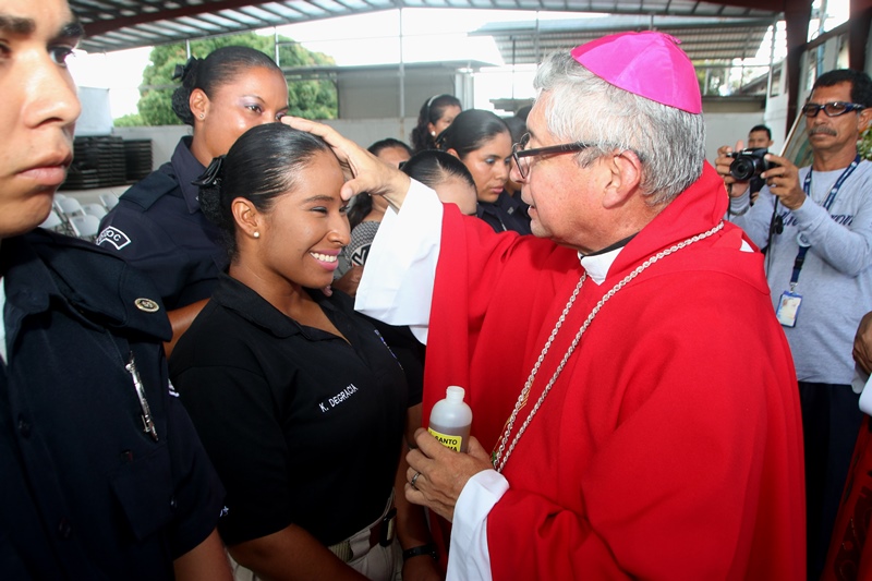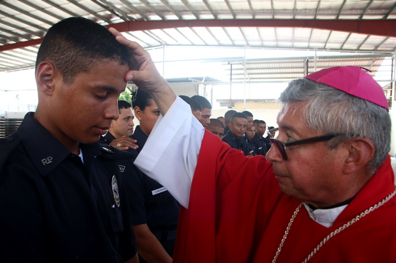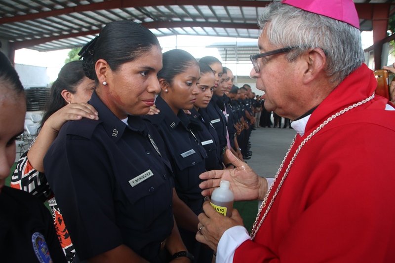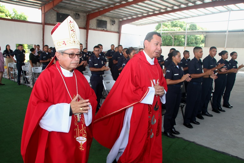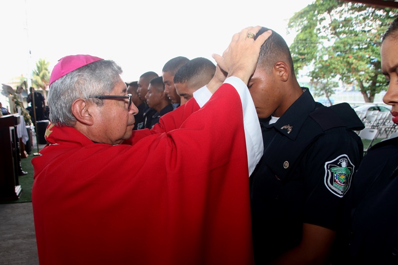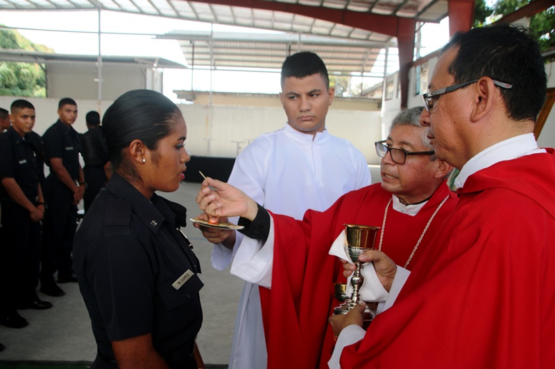 Un total de 38 cadetes entre hombres y mujeres del Instituto Superior Policial (ISPOL), recibieron el sacramento de la Confirmación en medio de una solemne misa llevada a cabo en la sede de la Policía Nacional en Ancón. La ceremonia religiosa la presidió el Obispo encargado de la Pastoral de los Estamentos de Seguridad, Pedro Hernández, concelebrada por el capellán de la Policía Nacional, Edgar Flores. “El Sacramento de la Confirmación, es uno de los pilares importantes en el crecimiento de la fe y la iniciación cristiana, para ir madurando y hacernos verdaderos discípulo de Jesús, derramando así el verdadero espíritu santo”, añadió el Obispo Hernández. En la Eucaristía estuvieron presente familiares, uniformados y padrinos, quienes son los encargados de llevar a los nuevos ahijados a la vida cristiana siendo modelos del buen ejemplo ante la sociedad. El capellán Edgar Flores, felicita a los cadetes por esta decisión tan importante que los llevará por los caminos del señor.