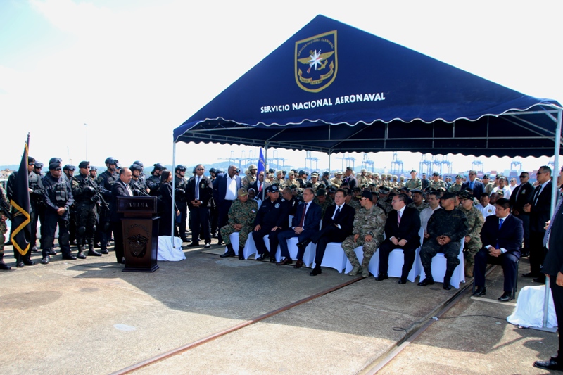 La vigilancia en las zonas costeras del Pacífico y el Caribe panameño, el espacio aéreo y el territorio nacional será redoblada por los miembros de los estamentos de seguridad, a fin de combatir la penetración del narcotráfico y demás actividades del crimen organizado. Así lo anunció el presidente de la República, Juan Carlos Varela, durante el lanzamiento de la ‘Operación Escudo’, en la que participarán unidades especializadas de la Fuerza de Tarea Conjunta, integrada por el Servicio Nacional de Fronteras (Senafront), del Servicio Nacional Aeronaval (Senan), de la Policía Nacional (PN), del Servicio Nacional de Migración (SNM) y del Servicio de Protección Institucional (SPI). El Mandatario detalló que, al igual que el año pasado, cuando se desarrolló la ‘Operación Patria’ -en la cual se incautó de 6,650 paquetes de drogas, municiones, 1.8 millones de dólares en efectivo y la captura de extranjeros ilegales- se cuenta con el apoyo de otras naciones por medio de mecanismos de cooperación, así como del intercambio de información de seguridad e inteligencia. Varela manifestó que su administración está convencida que la única manera de ganar la batalla al narcotráfico y convertir a Panamá como el país más seguro de América Latina es siendo exitosos en el desarrollo de la estrategia nacional de seguridad, la cual se enfoca en la prevención para mantener a los jóvenes alejados de la delincuencia, y el cumplimiento de la ley. El Gobernante destacó que “en materia de cumplimiento de la ley, apuntamos a seguir fortaleciendo nuestros estamentos de seguridad, proporcionándoles todo el entrenamiento, equipamiento, inteligencia y condiciones adecuadas de trabajo que necesitan, para ser leales al Estado y cumplir con su misión de proteger y servir a la población”. Manifestó que “al mismo tiempo, todas las autoridades del país tenemos que ser los primeros en dar el ejemplo de rectitud en el cumplimiento de las leyes y de nuestras obligaciones como servidores públicos, con eficiencia, transparencia, rendición de cuentas, respetando la separación de poderes y mostrando siempre nuestra lealtad al Estado en cada acción y decisión que tomemos en el ejercicio de nuestras funciones”. Varela afirmó que el Gobierno entiende que para prevenir la delincuencia no basta con aumentar la inversión pública en las áreas más vulnerables, sino que además se debe proporcionar a los jóvenes en riesgo social oportunidades de trabajo y enseñarles cómo usar sus manos para construir un mejor futuro. Compromiso con la seguridad Panamá se mantiene como uno de los países con más toneladas de drogas incautadas en la región y en los primeros 22 meses de este Gobierno se ha reducido la tasa de homicidios de 17 a 10 por cada cien mil habitantes. Sin embargo, el presidente Varela señaló que “no es suficiente”, por lo que reafirmó su compromiso con la seguridad del pueblo y con la protección del país para evitar que la plataforma multimodal de servicios logísticos y financieros de Panamá sea utilizada para actividades ilícitas. “Ese compromiso no surge de ninguna lista, controversia mediática o caso reciente, sino de los valores que me acompañan desde joven y me motivaron a cruzar a la vida pública para servir al pueblo panameño”, apuntó el Jefe del Ejecutivo. Indicó que está convencido de que los esfuerzos de prevención y cumplimento de la ley prevalecerán y “que a los que insistan en escoger el camino de la delincuencia, el narcotráfico y el crimen organizado, les caerá todo el peso de la ley, porque al final el Estado siempre gana”. Trabajo conjunto En el marco de la Operación Escudo, que se ejecutará por aire, mar y tierra durante los próximos 40 días, el Senafront reforzará la vigilancia en aquellas poblaciones y comunidades fronterizas para evitar el trasiego de drogas. Además, el Senan mantendrá sus operaciones en las vertientes del Pacífico y Atlántico, ya que son utilizadas por organizaciones criminales provenientes de Colombia para sus actividades. |