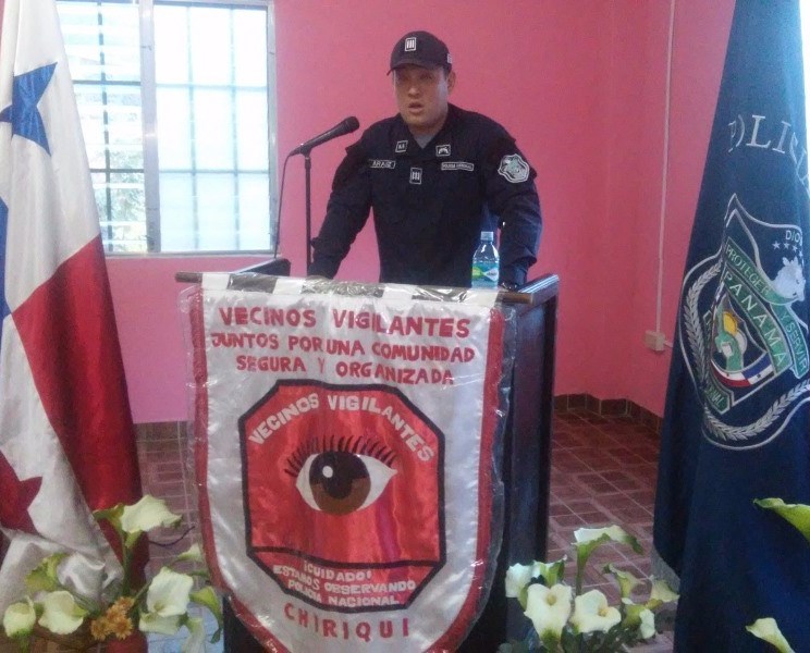 Unidades de la 4ta. Zona Policial de Chiriquí, inauguraron el segundo programa Vecinos Vigilantes en la Barriada Los Cabezos, del distrito de Boquete en el mes de mayo, con la finalidad de fortalecer las estrategias de seguridad. La actividad fue presidida por el Capitán Juan Araúz, encargado del Área “A” Boquete, el Licenciado Nodier Atencio, Corregidor Nocturno, en representación de la Alcaldía, el Representante de Los Naranjos, el Licenciado Eduardo Rodríguez, la Representante Distrital de Boquete, Licenciada Adela Montenegro, Presidente de la Barriada Los Cabezos, Señor Jorge Navarro, Presidente de la Barriada Los Cabezos y miembros de la Junta Directiva del programa del sector. El Capitán Araúz, encargado del área “A” Boquete, manifestó que es un grato honor estar aquí en este acto y ver una comunidad tan unida, cada vez que se inaugura un programa en el distrito de Boquete, es una satisfacción propia y de mi equipo de trabajo, por lo cual vemos que estamos aportando frutos a una comunidad donde no permanentemente residimos pero sin embargo trabajamos y es como nuestra segunda casa. “Quiero desearles éxito en este programa y a la vez que sigan con esta organización, ya que es un programa que tiene años y tiene credibilidad a nivel nacional, ha mostrado estadísticamente que la delincuencia disminuye”, agregó el encargado de Boquete. En este evento se contó con la participación de la banda de música de esta Zona Policial, además nos deleitamos con una presentación artística "el punto" por miembros de esta comunidad.