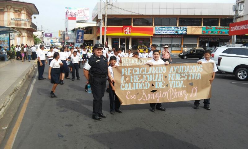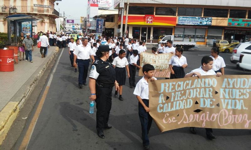 Unidades de la Zona de Policía de Herrera brindan seguridad a estudiantes de diferentes planteles educativos que se dieron cita a la caminata realizada en conmemoración de la semana del reciclaje; la cual se realizó por las principales calles del distrito de Chitré. Cabe señalar que la participación de los miembros de la Policía Nacional, se dio con la finalidad de mantener el orden y la seguridad, quienes escoltaron y caminaron junto a estos pequeños, con tal prevenir accidentes en el recorrido. Cabe señalar que la actividad fue organizada por el Ministerio de Educación, de la provincia de Herrera. |