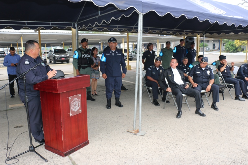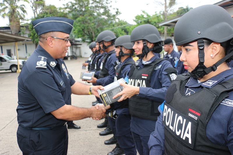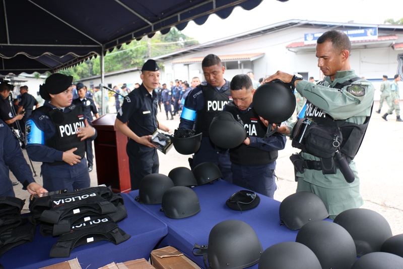 Efectivos del Grupo de Apoyo al Servicio (GAS) de la Policía Nacional fueron dotados con implementos de seguridad durante una ceremonia realizada este miércoles 18 de mayo del 2016, en la sede policial de Ancón y en la que estuvo presente el Director General, Omar Ariel Pinzón. “Recordar llevar con honor y orgullo el uniforme azul, sin olvidar que nos debemos a la comunidad de la que también somos parte”, dijo el Director General de la Policía Nacional, Omar Ariel Pinzón Marín, quien estuvo acompañado por miembros del Directorio Policial. A las unidades se les entregó chalecos antibalas, cascos con protección balística y lentes de protección. Estos implementos cumplen los más altos estándares de calidad para garantizarles mayor seguridad a las unidades y así, brindar un mejor servicio a la comunidad. Por su parte, el comisionado y jefe del GAS, Gustavo Cogley, agradeció al jefe policial por esta dotación que forma parte del plan de modernización y profesionalización de la Policía Nacional que lleva adelante la actual administración. Se tiene previsto continuar con la entrega de estos implementos en otras áreas de la Policía Nacional, con el objetivo que las unidades estén adecuadamente equipados para realizar su labor en pro de la seguridad y tranquilidad de los ciudadanos.