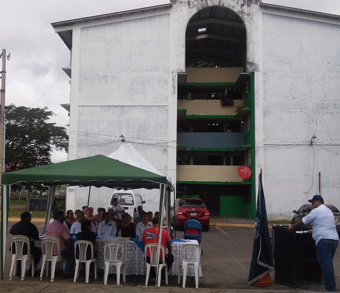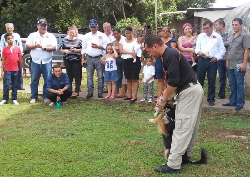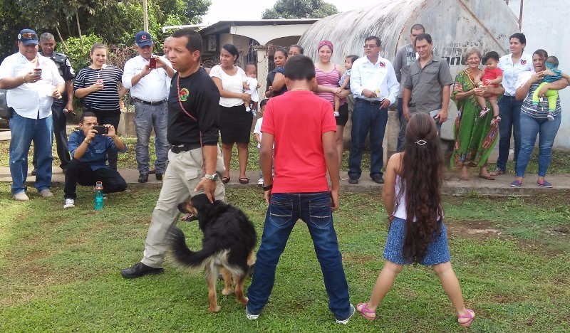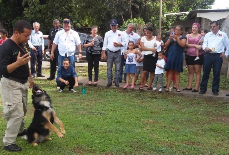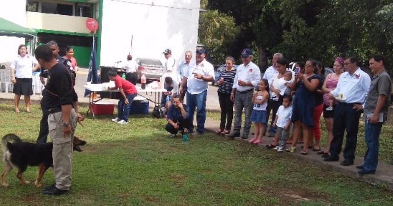 Continuando con las actividades de acercamiento, que realizan las unidades del Departamento de Seguridad Ciudadana de la provincia de Chiriquí, inauguraron el programa de Vecinos Vigilantes en los Edificios Salomón, ubicado en la ciudad de David. El Capitán Jorge Sánchez, fue el encargado de juramentar a los integrantes de la Junta Directiva del lugar y a la vez, dio las palabras de clausura del evento, agradeciendo a todos los presentes la confianza depositada en la Policía Nacional. La develación de la lámina que los identifica como parte del programa Vecinos Vigilantes de los Edificios Salomón estuvo a cargo del Subcomisionado Manuel Vence. El Grupo Juvenil Canino “Grujucan”, de la Zona Policial de Chiriquí, realizaron diferentes demostraciones como son de obediencia básica avanzada, trucos, pistas de agilidad y habilidades que tienen los canes. La actividad fue amenizada por la banda de música de la zona policial de Chiriquí, siendo el agrado de todos. El evento fue dirigido por el Subcomisionado Manuel Vence, Ejecutivo de la 4ta. Zona Policial de Chiriquí, el Capitán Jorge Sánchez, encargado de la oficina de Seguridad Ciudadana, de esta zona policial, el Licenciado Celso Trejos, en representación de la Alcaldía Municipal de David, el Licenciado Bayardo Ortega, de la Junta Comunal del sector, el Licenciado Rodrigo Espinoza, Director del Banco Hipotecario, de la provincia, la Profesora Janeth Sánchez, Presidenta Provincial de Vecinos Vigilantes, el Licenciado Edwin Martínez, Presidente de la Junta Directiva del Programa de Vecinos Vigilantes de los Edificios Salomón y la comunidad.