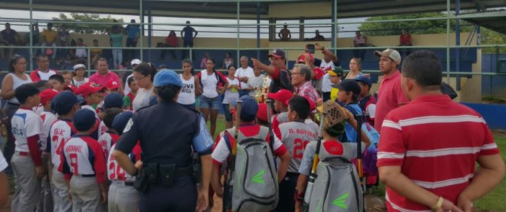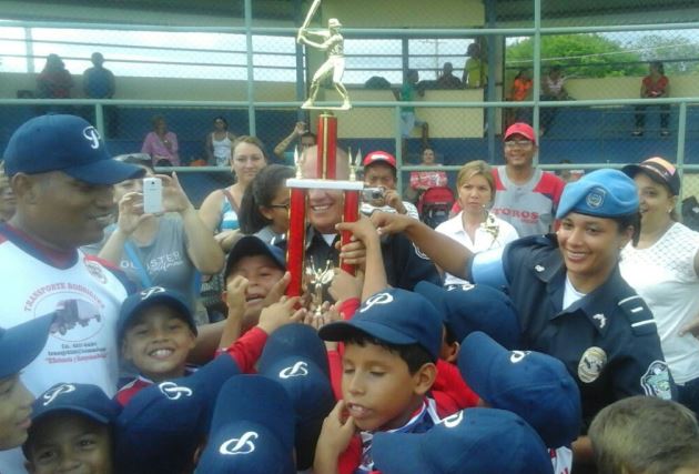 Los equipos de la 4ta. Zona Policial de Chiriquí, ocuparon el 1er lugar en la categoría bin-bin y pre-infantil, de la liga organizada por el club 20-30 realizada en el distrito de David. En esta Liga participaron cinco (5) equipos por categoría, entre las edades de 7 y 10 años de las diferentes comunidades. El Teniente Ronald Valdés y el Sargento 1ero. Ismael De la Rosa instructores de los equipos, expresaron sentirse sumamente satisfechos de la actuación de los peloteritos, destacando los dos triunfos de los niños en dichas categoría. "La experiencia que adquirieron los niños es muy importante en su formación, ya que enfrentaron a lanzadores de buena velocidad" acotó el Teniente Valdés. Felicitaciones a nuestros peloteritos y gracias a todos los padres y amigos que vinieron a ver el juego. |