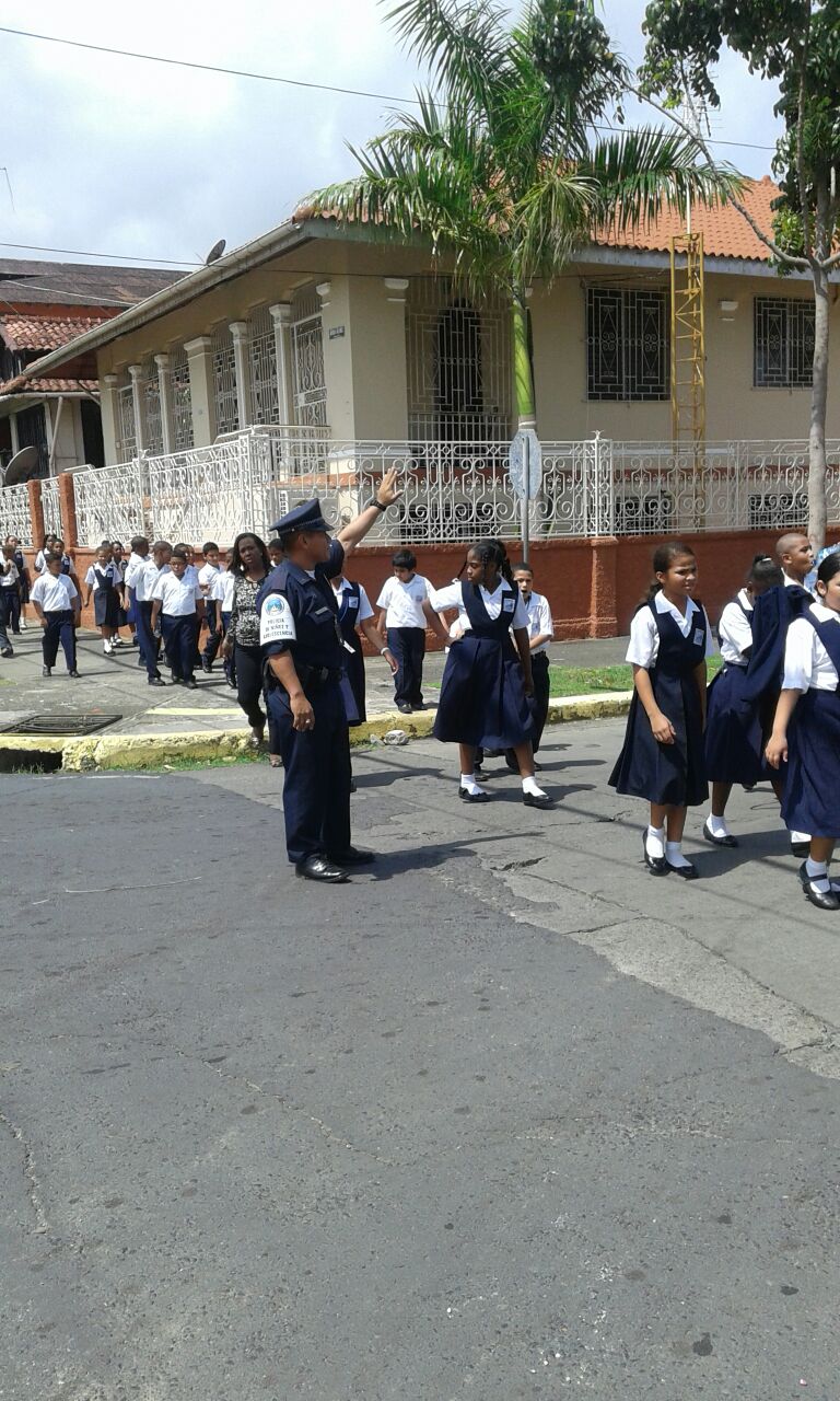 Unidades de la Policía Nacional, de servicio en la Zona de Policía de Colón continúa brindándole seguridad a los estudiantes de diferentes escuelas de la provincia. A través de las unidades de Niñez y la Adolescencia, la Policía en Colón, brinda la seguridad para proteger a los estudiantes en las horas de entrada y de salida de sus planteles, como ayudarlos a cruzar las calles para que no sean víctima de un atropello. La policía también realiza recorridos en los colegios para verificar que los estudiantes estén en sus planteles recibiendo sus clases. |