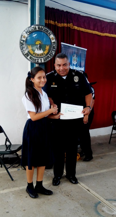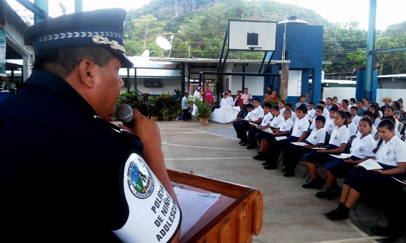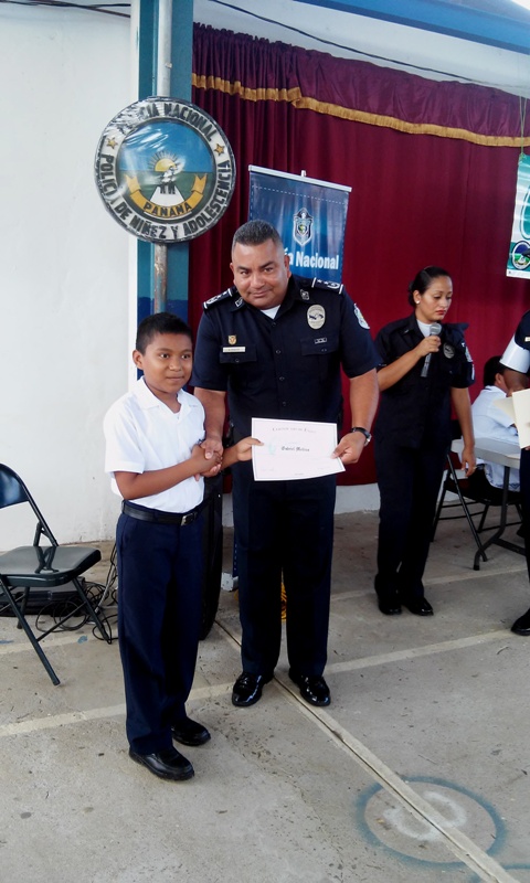 Con gran entusiasmo 38 alumnos del Centro Educativo Víctor Pérez Flores de la comunidad de Caimito, corregimiento de Pajonal en Penonomé, culminan el programa "Educación y Entrenamiento en Resistencia a las Pandillas " (G.R.E.A.T), brindado por la Policía de Niñez y Adolescencia de la Zona Coclé. En la ceremonia de graduación estuvieron presente el comisionado Aníbal Prados, jefe de la 2da Zona Policial, la directora del plantel la profesora Yamileth Sánchez, el capellán de la zona el padre Edilberto Ortiz, el teniente Ismael González, instructores del programa, personal docente, administrativo y padres de familias. El acto dio inicio con la invocación religiosa por parte del Padre Ortiz, quien agradeció a Dios por permitir que la institución Policial siga orientando a los niños, niñas y jóvenes de nuestra provincia. Por su parte, el comisionado Aníbal Prados, dijo que los programas que realiza la Policía Nacional son una herramienta en la prevención, donde el elemento fundamental son nuestros estudiantes al igual que sus padres y educadores. Para la institución policial es nuestro compromiso, orientarlos a decir " NO " a la violencia , al consumo y venta de drogas, a la integración de las pandillas , detalló el comisionado Prados. Al mismo tiempo felicitó a los estudiantes y los exhortó a ser agentes multiplicadores de la enseñanza recibida. La directora del plantel educativo la profesora Yamileth Sánchez, agradeció a la Policía Nacional por su labor que realiza y por haberlos tomado en cuenta en las capacitaciones, que serán de buen provecho para nuestros estudiantes.