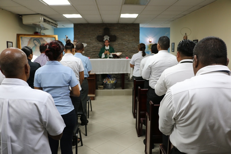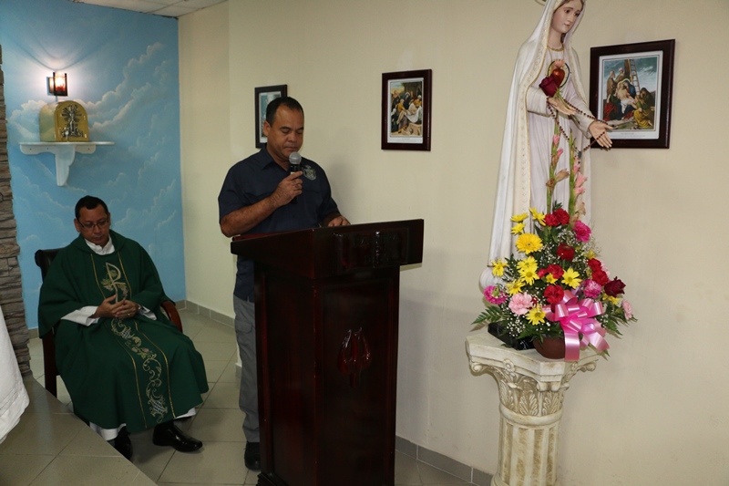Unidades de la Policía Nacional de servicio en la Dirección Nacional de Inteligencia Policial (DNIP) participaron en una misa de acción de gracias en la Capilla San Miguel Arcángel, ubicada en la sede de la institución, ubicada en el corregimiento de Ancón. En esta ceremonia estuvo presente el Director General de la Policía Nacional, Omar Ariel Pinzón Marín, acompañando al director y comisionado de la DNIP Gilberto Glen, jefes de departamentos, uniformados y no juramentados. El capellán de la Policía Nacional Edgar Flores fue el encargado de dirigir la misa, recalcando la importancia de fortalecer la Fe de las unidades, estrechando los lazos y reafirmando su compromiso de continuar trabajando en pro de la seguridad de la ciudadanía. |