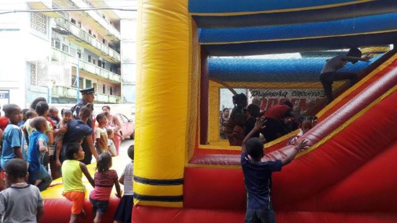 Las unidades del Departamento de Seguridad Ciudadana de la zona policial de Colón, continúan llevándole alegría a los niños del casco de la ciudad en sus vacaciones escolares. La tarde de este martes 7 de junio, le correspondió a los niños y niñas que viven en las calles 12 y 13 de la Avenida Meléndez, donde disfrutaton de los brinca brinca y las golosinas que le ofrecieron los uniformados. El niño Carlos Ruiz, dijo sentirse contento con la actividad que le ofrece la oportunidad de compartir con otros pequeños. Las familias de muchos de estos pequeños no cuentan con los recursos económicos para realizar actividades en vacaciones, por lo que esta iniciativa que les brinda la Policía Nacional es su opción para pasar momentos divertidos en un ambiente de sana convivencia. Esta actividad se realizara toda la semana de vacaciones en difenterentes sectores como la calle 5, Amador Guerrero, la calle 13 entre las Avenidas Justo Arosemena y Amador Guerrero, Villa del Caribe y Residencial Los Lagos.