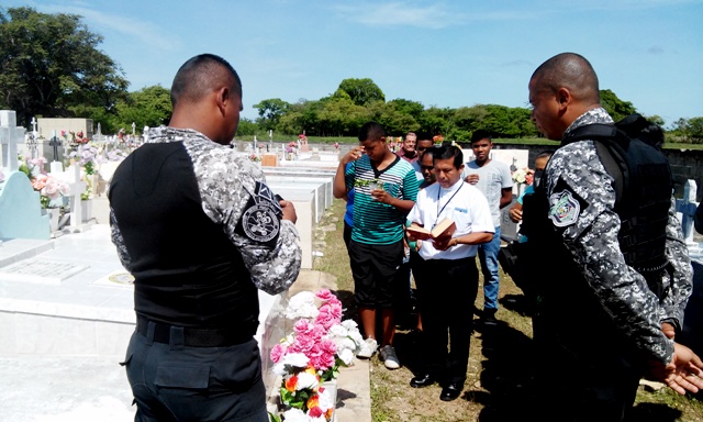 Como un noble gesto, unidades del Servicio Policial Motorizado de la Zona Policial de Coclé, restauraron la lápida del compañero Sargento Francisco Ortega, quien falleció hace 16 años en el cumplimiento del deber y se encuentra sepultado en el cementerio del Roble de Aguadulce. El capitán Víctor Distancia encargado de los Linces en Coclé, manifestó que es de gran satisfacción la entrega de esta significativa obra de restauración, a la madre del compañero la señora Romelia Elisa Jaén, quien se sintió agradecida y contenta con las unidades ,por mantener presente la imagen de su hijo. En tanto, se dio la bendición de la lápida por el padre Edilberto Ortiz capellán de la 2da Zona Policial. Cabe resaltar , que posteriormente se reunieron en la residencia de la señora Romelia, donde compartieron y recordaron pasajes importantes de la vida de su hijo Sargento 1ero Francisco Ortega, quien descansa en la paz del señor.