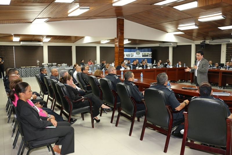 Miembros del Directorio de la Policía Nacional participaron este miércoles 8 de junio de la charla motivacional “Promoviendo los Principios y Valores Familiares”, la cual se llevó cabo en el Salón de Conferencia de esta institución, ubicada en el corregimiento de Ancón. La charla fue brindada por la Fraternidad de Internacional de Hombres de Negocios (FIHNEC) en la cual estuvo presente el gobernador de la provincia de Panamá, Rafael Pino Pinto, acompañado de oficiales y personal no juramentado de esta institución de seguridad. Cada una de las unidades tuvieron la oportunidad de compartir en los diversos talleres brindados por el señor Alberto Domingo de (FIHNEC), quien resaltó la importancia del perdón para llegar a la felicidad. El Director de la Policía Nacional, Omar Ariel Pinzón Marín, manifestó que al realizar estas actividades se fortalece los valores familiares como base nuestra sociedad. Es muy importante mejorar las relaciones en la familia para que cada uno tenga un buen desempeño laboral. La subcomisionada y directora de la Dirección Nacional de Bienestar Policial y Familiar Elida Ortega, hizo entrega formal de un reconocimiento al señor Alberto Domingo, por parte de la Policía Nacional, por promover estos valores que son importantes para la sociedad. |