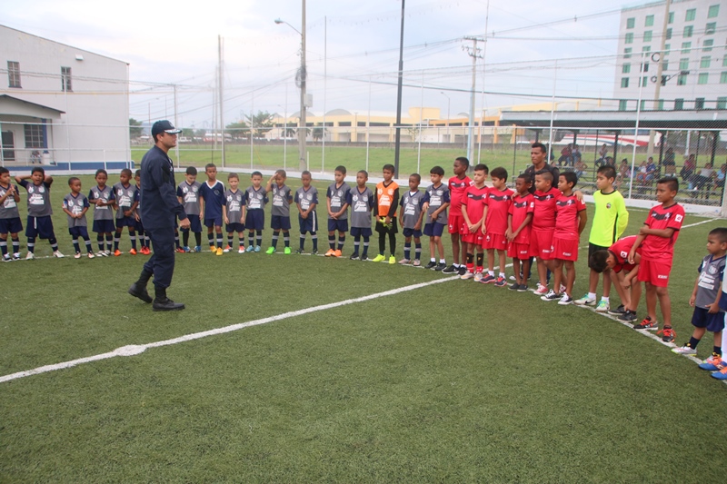 Con 8 equipos conformado por más de 150 niños de diversas comunidades, inició la liga de fútbol “Copa Vacaciones”, organizada por la Policía Nacional. La ligar que se juega en las categorías sub-7 y sub-9, busca aprovechar los días vacaciones escolares para que los niños interactúen, a la vez, promover en ellos valores y el trabajo en equipo. El Atlético Nacional de Ancón y Nuevo Tocumen fueron los equipos que se enfrentaron durante la inauguración de esta copa, en la cancha sintética de la sede policial en el Corregimiento de Ancón. “Con estas actividades la Policía Nacional ofrece espacios recreativos a los niños y niñas al tiempo que les dicta charlas, contribuyendo de esta manera con su desarrollo integral”, dijo el comisionado Esteban Martínez, encargado de los programas de Convivencia Pacífica de la Policía Nacional. Los equipos participantes se enfrentaran en varios partidos, previo a la gran final el sábado 11 de junio. Este evento deportivo forma parte de las actividades del programa de Convivencia Pacífica que desarrolla la Policía Nacional a través del Departamento de Deportes de la Dirección de Bienestar Policial y Familiar. |
