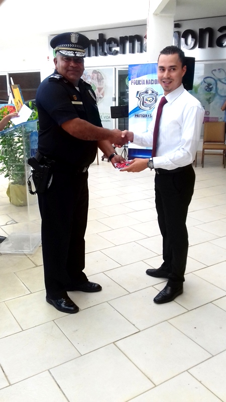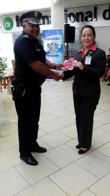 Un total éxito fue la inauguración del programa preventivo “Comercios Vigilantes” de la Policía Nacional en la Plaza Comercial Sorpresa Mall en la ciudad de Penonomé, donde 41 locales comerciales se unen al programa. La ceremonia contó con la presencia del jefe de la Segunda Zona Policial el comisionado Aníbal Prados, autoridades locales, dueños de comercios, invitados. El acto inaugural dio inició con la bendición del padre Higinio Sánchez, sacerdote de la catedral San Juan Bautista de Penonomé, quien ofreció una oración por la obra, tan importante en seguridad, que inician junto a la Policía Nacional. Para Dayubel Laurin coordinadora del programa de vigilancia en la Plaza Comercial, dijo que se sentía contenta y satisfecha porque dan inicio a un proyecto que ayudará en gran medida a la prevención y seguridad estando en estrecha colaboración con la Policía Nacional. Cabe destacar que el acto se desarrolló con presentaciones folklóricas como la de la señora Marta Poveda de Rodríguez quien deleito con tamboreras de la campiña interiorana, además la participación de Matías Barrios quien encanto al público con su danza del “Diablico Sucio”. Se realizó entrega de placas y calcomanías, que se colocaran en los establecimientos comerciales. El comisionado Prados manifestó que es un gran logro para todos la realización de este proyecto, donde de manera coordinada y con el esfuerzo y participación de cada uno permitirá trabajar por la seguridad de todos. |