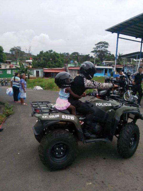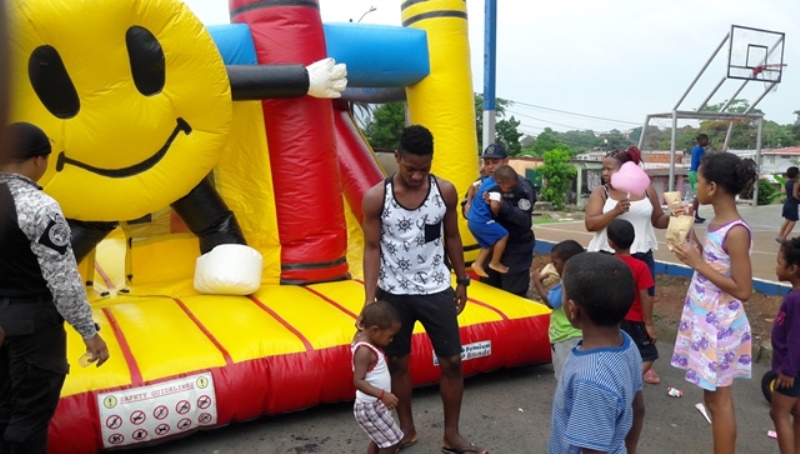 Unidades de la Policía Nacional de servicio en la Unidad Motorizada “Linces” de la zona policial de Colón y la oficina de Seguridad Ciudadana, comparten con niños y jóvenes del sector de Custory en Villa del Caribe corregimiento de Cristóbal. Los chicos disfrutaron de brinca brinca, paseo en moto, golosinas y pasaron un rato a meno compartiendo con las unidades. La actividad se realizó con la finalidad de que los niños y jóvenes vean a los linces al igual que a los otros grupos policiales como sus amigos y no como represores.