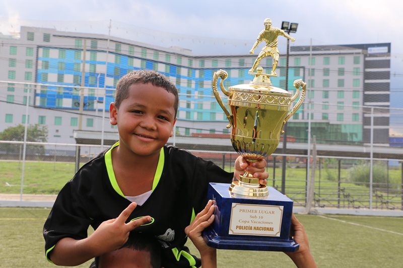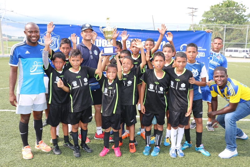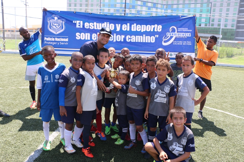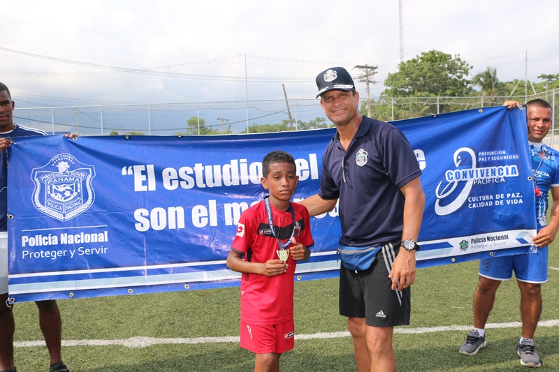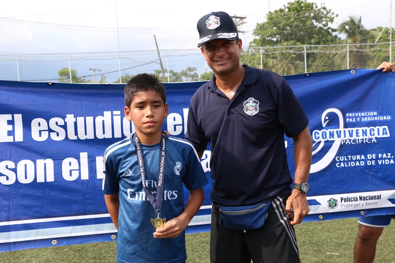 El Director General de la Policía Nacional, Omar Ariel Pinzón Marín disfrutó junto a niños la “Copa Vacaciones” que se desarrolló el sábado 11 de junio en la cancha sintética de esta entidad de seguridad ubicada en el corregimiento de Ancón. “Ver a estos niños jugar y compartiendo con otros de distintos sectores de la ciudad capital, es gratificante para nosotros como entidad de seguridad porque ellos son el futuro”, dijo el jefe de la Policía Nacional. Se trata de los niños que forman parte del programa “Convivencia Pacífica” que adelanta la Policía Nacional, quienes disputaron la final de fútbol “Copa Vacaciones 2016”. En la categoría sub-7 el campeonato se lo llevó el equipo del Real España de Tocumen, mientras que el equipo subcampeón fue el Atlético Nacional de Ancón; ambos recibieron trofeos y obsequios por su participación. Mientras que en la categoría sub-10 el equipo que resultó campeón fue el Atlético Nacional Tocumen y el segundo lugar le correspondió al Deportivo de San Francisco, los reconocimientos y regalos no se hicieron esperar. Más de 300 niños de diversos barrios vulnerables de la ciudad capital, Samaria, Curundú, San Miguel, Bruklincito, San Francisco, y Felipillo, se disputaron la Copa Vacaciones, además de otros jóvenes que integran la escuela de fútbol del sector Oeste como Arraiján, Vacamonte, El Chumical, y La Chorrera. De esta manera el programa “Convivencia Pacífica” que busca preservar la paz, prevenir la violencia, y educar en valores, que es ejecutado a través de la Dirección Nacional de Bienestar Policial y Familiar de la Policía Nacional cierra con éxito dicho evento que fue apoyado por los padres de familia de principio a fin. |