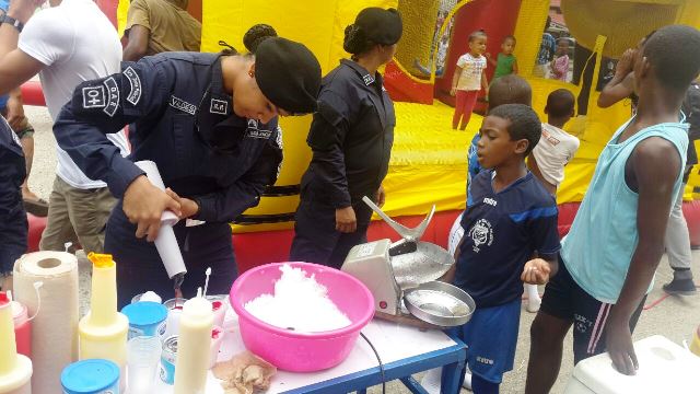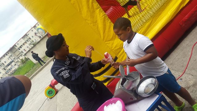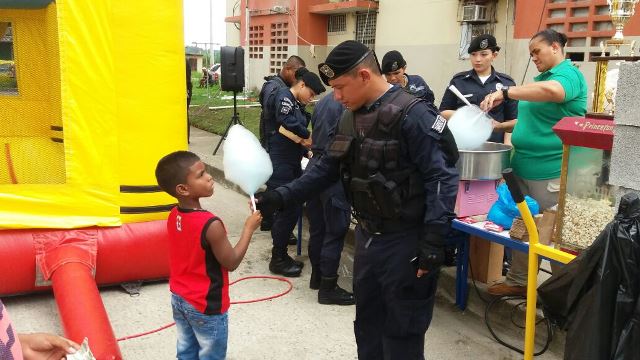 Unidades de la Zona de Policía en Colón continúa compartiendo con los niños de los barrios, esta vez fue el Grupo de Acción Rápida (GAR) quienes estuvieron en el residencial Los Lagos. El sábado 11 de junio, desde tempranas horas las unidades se trasladaron al lugar donde se entretuvieron en los diversos juegos que había en el lugar. El capitán Santander Torres, señaló que siguiendo las instrucciones del comisionado Carlos Rumbo, de interactuar con miembros de la comunidad a través del compartir con los niños y jóvenes. |