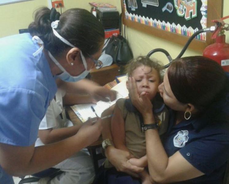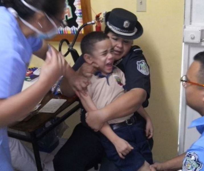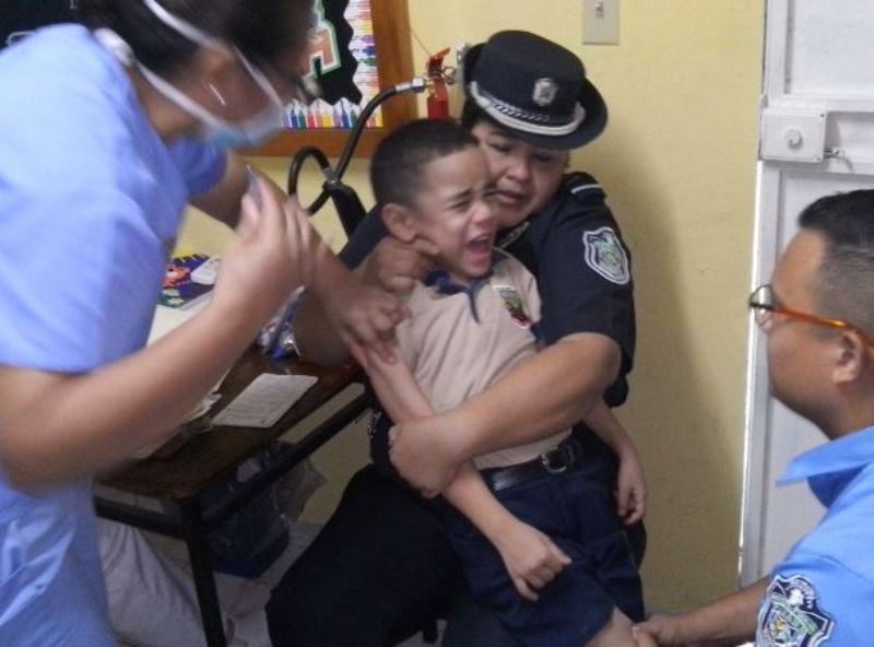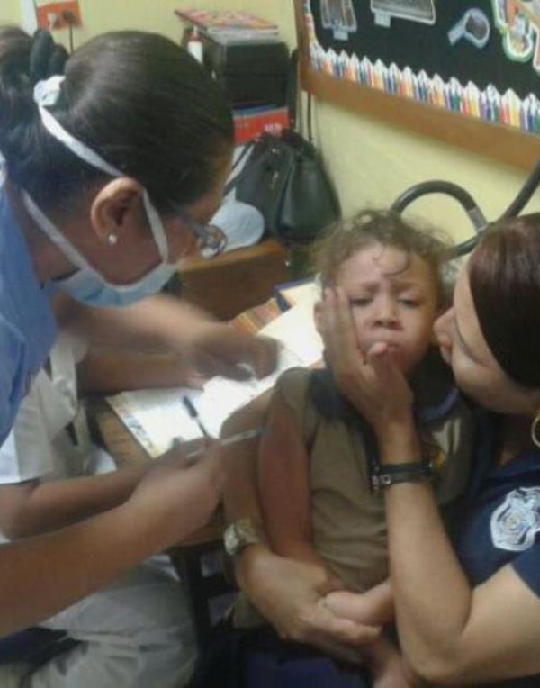 Niños y niñas del Centro de Orientación Infantil (COIF) Fuente del Saber, de la 4ta. Zona Policial de Chiriquí, participaron de una jornada de vacunación para prevenir el virus de la influenza (AH1N1). El personal de la clínica de la zona policial de Chiriquí, “Sargento 1ero. Luis González” en conjunto con los funcionarios del Ministerio de Salud (MINSA) acudieron a este centro educativo, donde además de vacunar a los estudiantes se les orientó sobre las medidas de higiene necesarias para prevenir la enfermedad. La subteniente Beatriz Aparicio, encargada del COIF en la provincia, calificó de exitosa esta actividad en la que también estuvieron presentes los padres de familia. “Es importante educar a los niños, jóvenes y personas adultas sobre la necesidad de aplicar las medidas de prevención como: utilizar gel alcoholado, lavarse frecuentemente las manos y utilizar pañuelos al estornudar o toser”, acotó la subteniente Aparicio. |