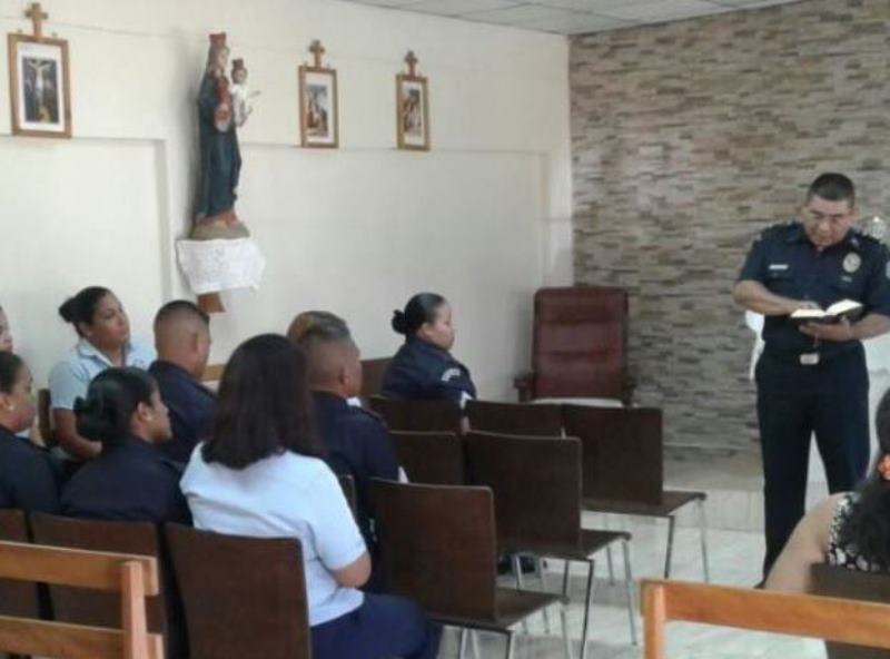 Con una misa de acción de gracias, unidades de la 4ta. Zona Policial de Chiriquí, celebraron el 4to. aniversario de la Capilla "San Antonio de Padua", de esta zona policial. El personal juramentado y no juramento de esta institución e invitados especiales asistieron a la misa auspiciada por el padre Heriberto Ríos, Capellán de la zona, quien se dirigió a los presentes para recordarles que no sólo Dios debe perdonar, que nosotros los seres humanos también debemos hacerlo y no guardar rencores en nuestros corazones. Se aprovechó la oportunidad para realizar el sacramento del bautizó al hijo de una de nuestras funcionarias uniformadas. |