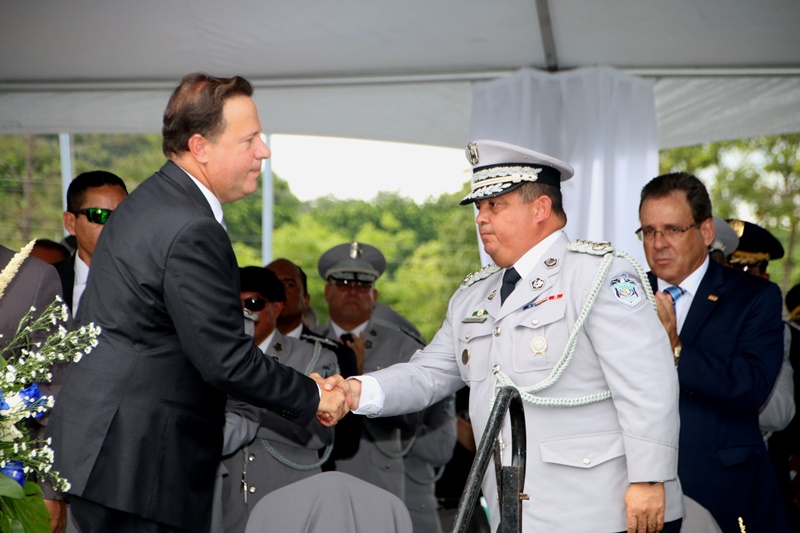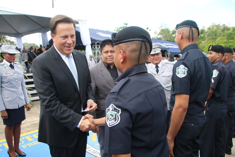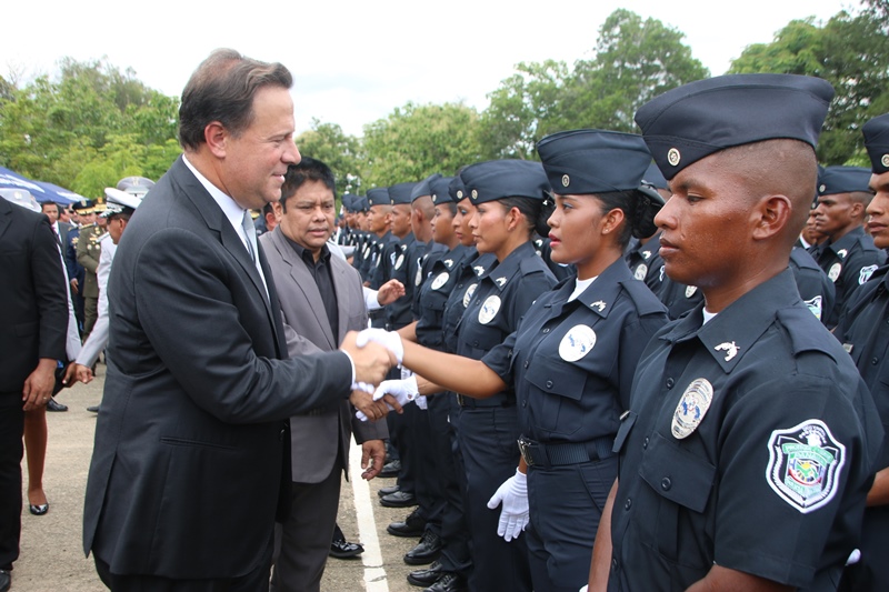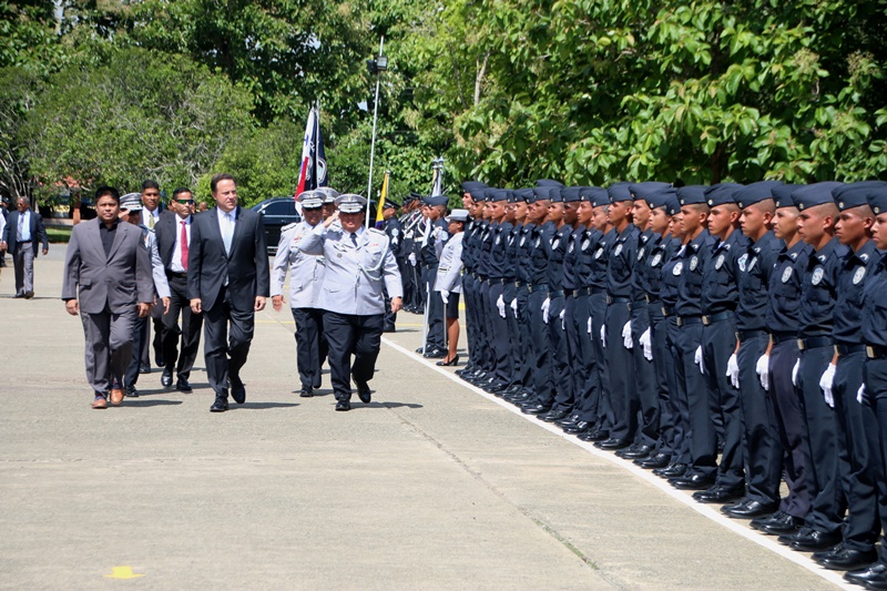 “En el día de hoy, la Policía Nacional cuenta con nuevos hombres y mujeres, quienes servirán con orgullo y honor al país, quienes realizarán un trabajo enmarcado en la ley, para construir un mejor país” señaló el Presidente de la República Juan Carlos Varela Rodríguez, durante la ceremonia de graduación de la promoción 80 y 81 de agentes del Instituto Superior Policial (ISPOL). El Mandatario de la República resaltó la importancia de la labor que realizan cada una de las unidades, quienes día a día arriesgan su vida brindando seguridad a la ciudadanía, recordando al subteniente Luis Alberto Morán, quien falleció este miércoles cumpliendo con sus funciones. Por su parte, el Director General de la Policía Nacional, Omar Ariel Pinzón Marín dijo que las 740 unidades que se integran a labor de brindar seguridad a la Nación panameña, son dos generaciones de policías formados con calidad y profesionalismo, quienes obtienen el título de Técnico Superior en Seguridad Pública. En estas promociones egresan 42 agentes para el Servicio Nacional Aeronaval, 79 para el Servicio Nacional de Migración, 36 para la Autoridad Nacional de Aduanas y 583 para la Policía Nacional. Durante un periodo de ocho meses estos jóvenes fueron instruidos en un plan académico personalizado científico y técnico, cimentado en valores, derechos humanos y trato al público. Estas promociones fueron bautizadas como Doctor Justo Arosemena y General José de Fábrega, en honor a estos próceres de la patria. En este acto, también fue reconocido con el ascenso al rango inmediato superior, el valor y heroísmo de cinco unidades de la Policía Nacional, quienes lograron la captura de los asaltantes de una entidad bancaria y la recuperación del dinero robado, hecho ocurrido el lunes 13 de junio de 2016. Desde el año 2014 al 2016, han egresado del Instituto Superior Policial 2 mil 826 unidades quienes obtuvieron el Técnico Superior en Seguridad Pública y el Técnico en Investigación Criminal. En este Proceso de formación también egresaron 199 unidades del Servicio Nacional de Migración, 36 unidades de la Autoridad Nacional de Aduanas y 42 del Servicio Nacional Aeronaval. |