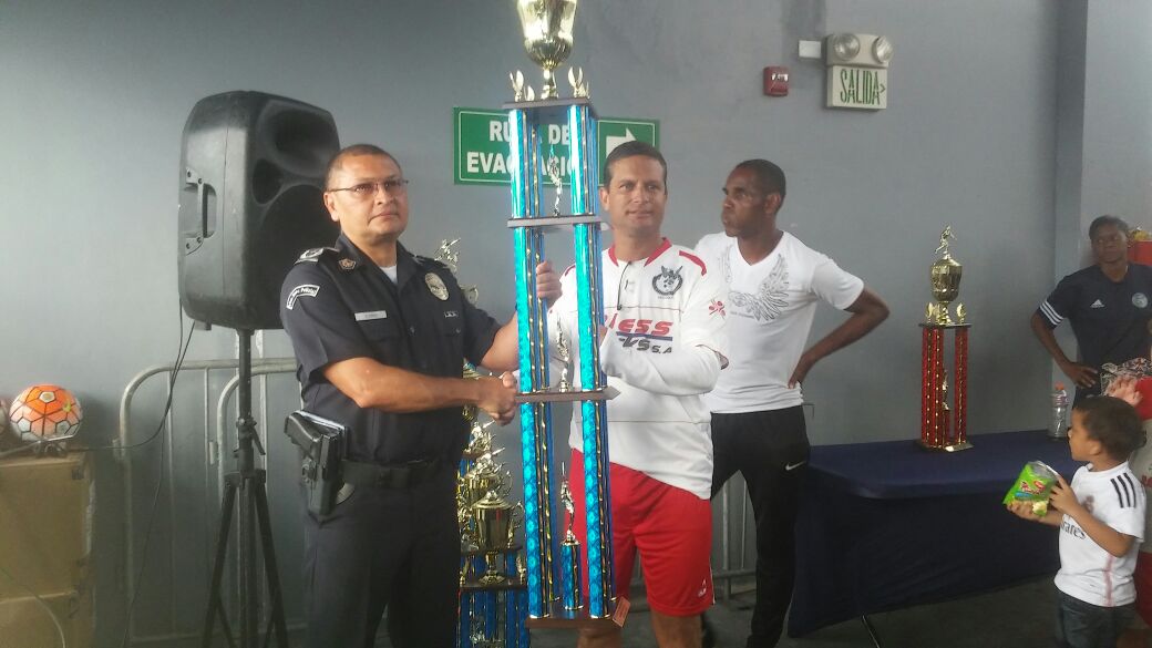 Unidades de la Policía Nacional clausuraron este viernes 17 de junio la liga de interzona de fútbol, en el Estadio Maracaná en el corregimiento de El Chorrillo. Esta competencia deportiva se llevó a cabo en tres categorías: abierta, veteranos y Femenina, siendo el equipo de Bienestar Policial, quienes se alzaron con el primer lugar del torneo, mientras que el segundo puesto lo obtuvo la onceava zona Policial de San Miguelito en la categoría abierta. Dentro de la categoría femenina la onceava zona Policial de San Miguelito fueron las campeonas y el segundo lugar lo obtuvieron el Grupo de Apoyo al Servicio (GAS). En la categoría de los veteranos el equipo de Bienestar Policial lograron alzar el trofeo de campeones y la Zona Policial de San Miguelito se colocaron con el segundo lugar También fueron premiados agente Jeni Gallardo y el Miembro no Juramentado Alberto Zapata (Telemática), como mejores anotadores dentro del torneo, se reconoció al Guardametas menos vencido el Agente Rubí Díaz y el Subteniente Gergy Aguilar y obteniendo el título del jugador más valioso lo obtuvo el Sargento Aníbal Martínez y en la categoría femenina Natalia Mills. El Comisionado Carlos Ortiz de la zona Policial de San Miguelito y el Mayor Darwin Grupo de Apoyo al Servicio (GAS) hicieron las entregas de trofeos y medallas a estos grandes jugadores y agradecieron a todas las personas que colaboraron con la Policía Nacional para lograr el éxito de esta actividad deportiva. |