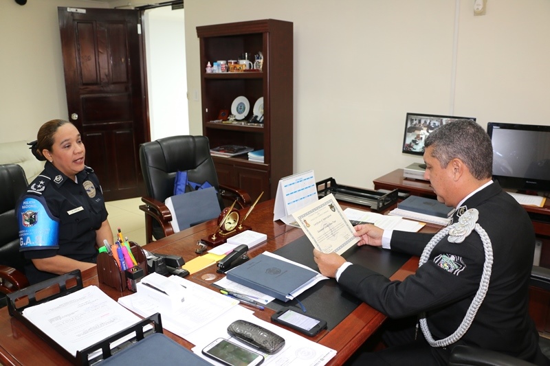 Dos oficiales de la Policía Nacional regresaron a Panamá, luego de participar del “Women in Military and Security Conference”, que se llevó a cabo del 13 al 17 de junio en Trinidad y Tobago. Esta conferencia estuvo representada por uniformados de más de 15 países del continente americano y el caribe, con el objetivo de conocer la participación y los avances de las mujeres dentro de las instituciones de seguridad pública. La comisionada y directora de Gestión y Proyectos, Oris Jaén y la subcomisionada Alma Vega del Grupo de Apoyo al Servicio (GAS), fueron las representantes de compartir información sobre evolución que ha tenido la mujer dentro de las filas de la Policía Nacional de Panamá. Las oficiales fueron recibidas por el Secretario General de la Policía Nacional, comisionado Manuel de León, quien resaltó la importancia del trabajo que realiza cada una de las uniformadas dentro de esta institución de seguridad. |