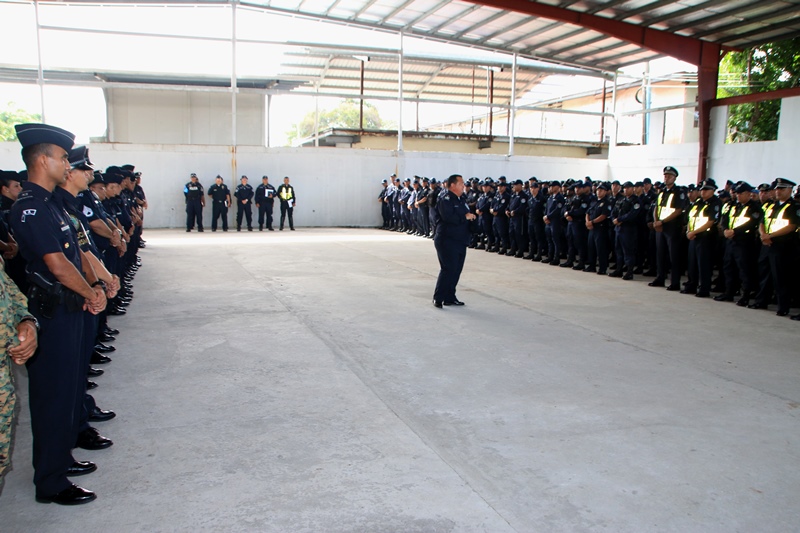 Más de mil uniformados de los estamentos de seguridad que conforman la Fuerza de Tarea Conjunta fueron recibidos por el Director General de la Policía Nacional, Omar Ariel Pinzón Marín en la sede de la institución, ubicada en el corregimiento de Ancón, donde se realizan las coordinaciones del dispositivo de seguridad que se desplegará en los actos de celebración del Canal ampliado, este domingo 26 de junio de 2016. “Estamos preparados para garantizar la seguridad de los miles de panameños y extranjeros que participarán de este evento, que nos llena de orgullo como panameños, y como panameños cumpliremos nuestra misión de proteger y servir, dejando en alto a nuestro país”, dijo el Director General de la Policía Nacional, Omar Ariel Pinzón Marín. El jefe policial conversó con las unidades policiales destacando la importancia de este evento que pone los ojos del mundo en Panamá y que representará un mayor progreso económico para el país y a nivel internacional. Por su parte, el comisionado y jefe de la 12ava. Zona Policial del Canal, Néstor Valdés dijo que este grupo de uniformados son parte de los 11 mil 151 efectivos que estarán desplegados en diferentes puntos, como los alrededores de las nuevas esclusas en Cocolí, en la ciudad de Panamá y Agua Clara, en la provincia de Colón, incluyendo los espacios públicos a nivel nacional, donde se podrá ver en vivo a través de pantallas. El acto inaugural iniciará muy temprano este domingo 26 de junio, cuando el buque neopanamax Cosco Shipping Panamá, realice el tránsito inaugural en la nueva esclusa de Agua Clara, en el Atlántico, donde será recibido por autoridades panameñas.