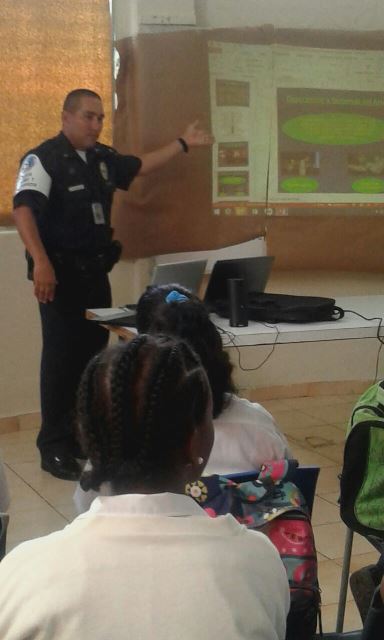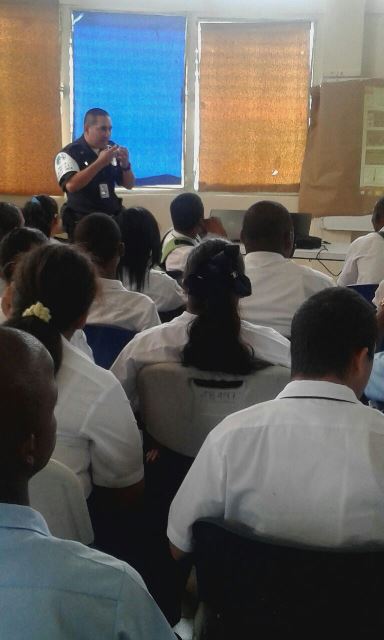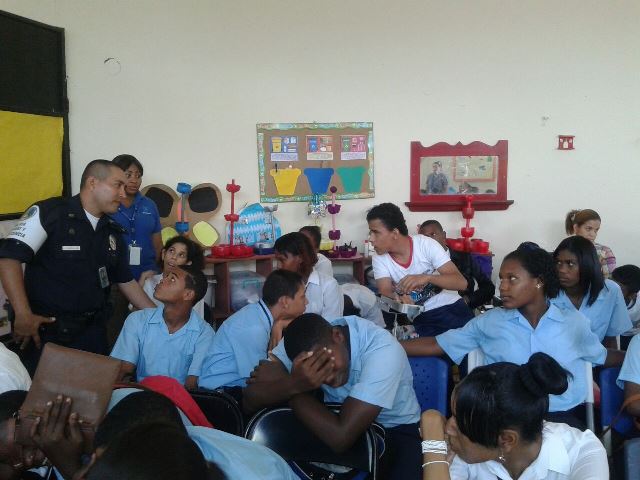 Estudiantes del Instituto de Panameño de Habilitación Especial (IPHE) reciben charlas por agentes policiales de Niñez Adolescencia, sobre el uso de las drogas y su consecuencia. Unos 55 estudiantes reciben las charlas donde las unidades les hablan para que por su condición especial no se han introducidos por personas del mal vivir a utilizar las drogas. Por lo que en compañía de una psicóloga se les explica lo malo que le puede suceder si utilizan droga. En la charla también estuvieron dos trabajadoras sociales quienes con la las unidades policiales y la psicóloga le iban explicando a los adolescentes.