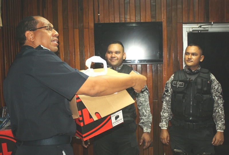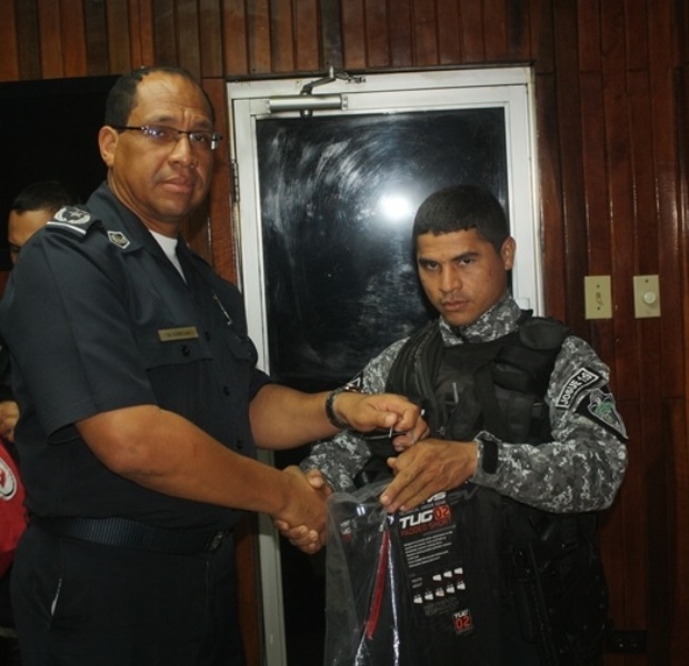 Cuatro unidades del Servicio Policial Motorizado (Linces) de la provincia de Chiriquí, quienes en días pasados frustraron un robo a mano armada en una residencia, ubicada en la el corregimiento de San Pablo Nuevo, en el distrito de David, recibieron sendos reconocimientos por parte de la Policía Nacional. Los cabos de apellidos Montenegro, Beteta, Serano y Jurado, fueron los primeros en llegar al lugar donde tres sujetos mantenían amordazada a toda una familia y amenazaban con quitarles la vida, con armas de fuego. En el acto, gracias a la rápida intervención de estos héroes, fueron aprehendidos dos sujetos, mientras que un tercero se dio a la fuga en una camioneta de las víctimas, que horas después fue localizada por la Policía en el corregimiento de las Lomas. Las unidades uniformadas recibieron cascos, guantes, rodilleras, espinilleras, coderas, licras de seguridad y bala clava (Protector de rostros), para un mejor desempeño policial. En Chiriquí la entrega la realizó el Comisionado Arquímedes Vargas, en representación del Comisionado Eric Javier Amaya Sánchez, Jefe de la 4ta. Zona Policial de Chiriquí.