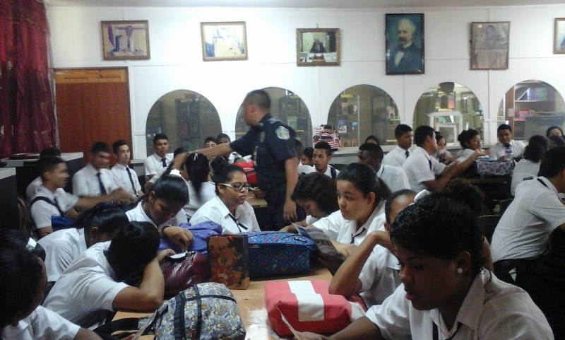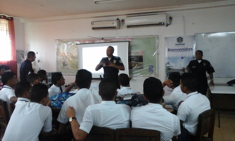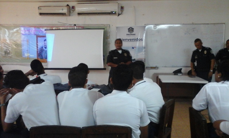 Unos 75 alumnos del sexto año del colegio Fernando De Lesseps fueron capacitados este lunes 4 de julio en varios temas por unidades de la Treceava Zona Policial de Arraiján. El primero en dirigirse a los estudiantes fue el Teniente Arístides González del Departamento de Reclutamiento y Selección de Personal quien les habló sobre los requisitos para formar parte de la institución. Los Capitanes Ruth Sánchez y José Quiel del Servicio Policial Cristiano les brindaron capacitación en los temas sobre las consecuencias de un embarazo precoz, las drogas, culturas y modas y la sensualidad. Luego de las intervenciones, los participantes tuvieron la oportunidad de intercambiar algunos conceptos con los oficiales. |