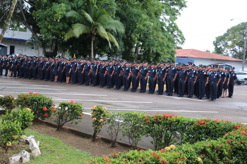 Uniformados y miembros no juramentados de la Policía Nacional, además de invitados especiales se congregaron en las instalaciones de Ancón para rendirle honores al Pabellón Nacional, en la celebración del primer lunes cívico del mes de julio de 2016. Con las notas del Himno Nacional, se izó la bandera en una actitud de respeto y civismo por parte de los asistentes a la actividad. Luego se realizó la colocación de una ofrenda floral en memoria de los caídos en cumplimiento del deber, estatua que reposa en las instalaciones de la Institución. El Capellán de la Policía Nacional, Edgar Flores, expresó que este tipo de actividades enaltece dentro de la institución el patriotismo y el amor al país. “Es nuestro deber como ciudadanos amar y respetar a nuestra nación” afirmó el representante de la iglesia. El momento fue amenizado por la banda de música de la Policía Nacional. El acto estuvo encabezado por el Director Penitenciario de la Policía Nacional, David Ramos, Secretario General, Manuel De León, y miembros del Directorio, además de varias unidades que pertenecen a la Asociación Nacional de Reservistas de Panamá.