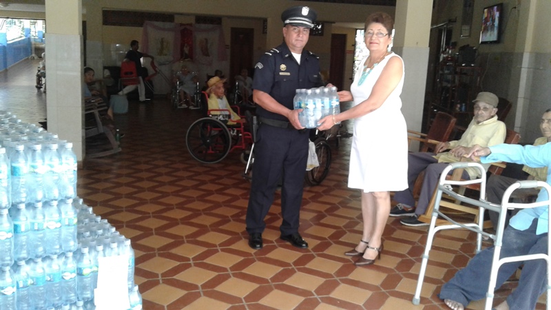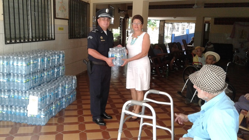 UNIDADES POLICIALES ENTREGA AGUA EMBOTELLADAS EL HOGAR DE ANCIANO