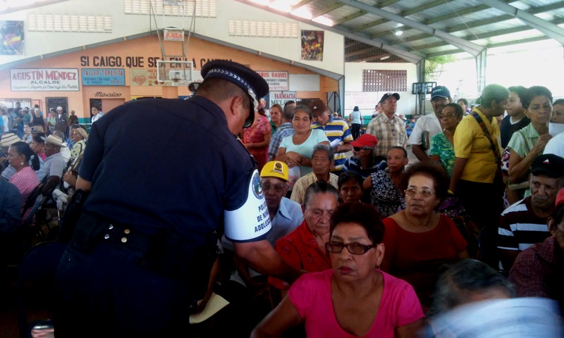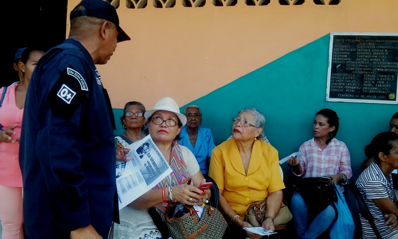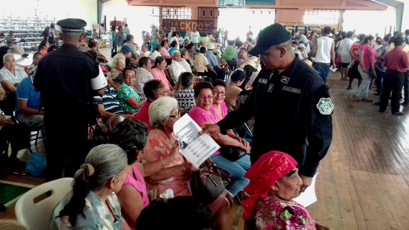 Con la finalidad de promover la seguridad en los ciudadanos y pongan en prácticas las recomendaciones que brinda la Policía Nacional, unidades de la Segunda Zona Policial, llevaron a cabo una jornada volanteo en el Gimnasio Algis Moreno en Penonomé, donde se realiza la acreditación a las personas que participan del programa 120 a los 65. Las unidades interactuaron con las personas proporcionándoles orientación para que adopten medidas de seguridad en sus hogares, lugares de trabajo o cuando se dirijan alguna parte, además facilitaron a las personas los números de teléfono de las distintas subestaciones en Coclé y la línea gratuita de la institución el 104, por cualquier denuncia o acto delictivo que esté ocurriendo. La señora Rosa Herrera de 94 años, manifestaba que esas acciones que realiza la Policía Nacional son buenas, porque "Nos dan la vueltita para no ser víctimas de malhechores" , también "Nos socorren si necesitamos algo" nos brindan su apoyo, mencionaba la señora Herrera. |