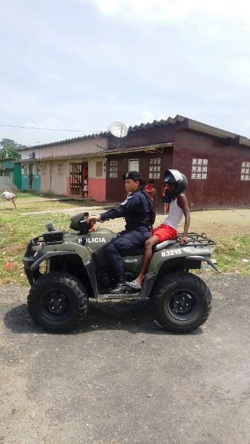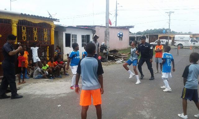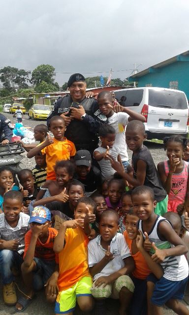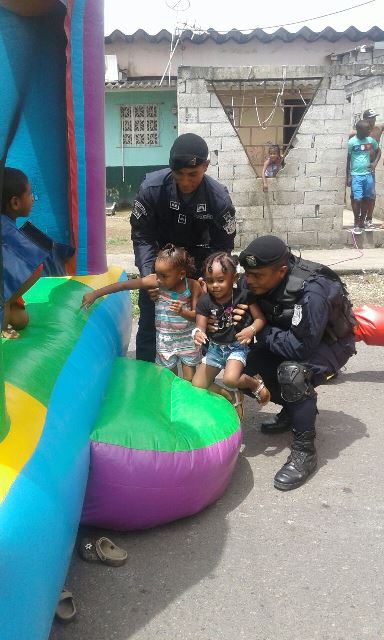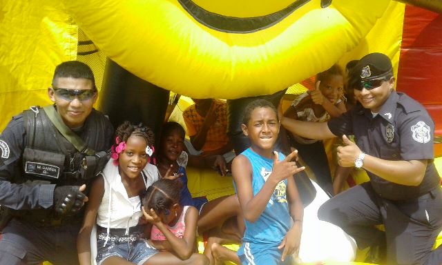 Los niños que residen en la Playita en el residencial Los Lagos, tuvieron un día de alegría y de compartir con las unidades del Grupo de Acción Rápida de la zona policial de Colón. Los agentes policiales se ganaron el corazón de los niños cuando llegaron con brinca brinca, golosinas y hasta jugaron fútbol con los chiquillos que en sus rostros se veía la alegría. La zona policial de Colón realiza estas actividades durante todo el año en diferentes sectores de la provincia pero con mayor énfasis en el mes del niño que se celebra el Día del Niño y la Niña. |
