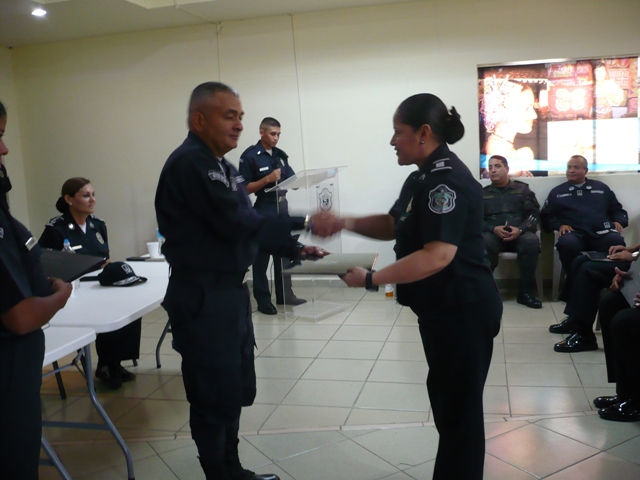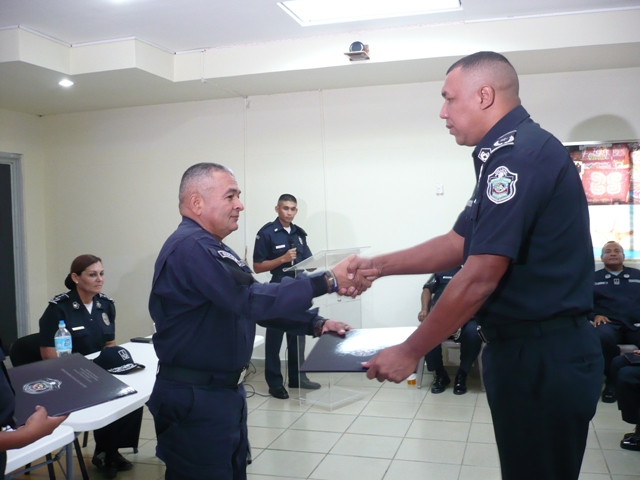Unidades de la Policía Nacional de servicio en la Dirección Nacional de Docencia, realizó este viernes 15 de julio la ceremonia de graduación del Diplomado en Plana Mayor dirigidos a Capitanes que ascenderán al rango superior inmediato. La actividad se realizó en las instalaciones del Instituto Superior Policial, (ISPOL), Presidente Belisario Porras, ubicado en Gamboa, donde unos 32 oficiales con el rango de capitanes recibieron su diploma de culminación del Diplomado, luego de permanecer seis meses capacitándose. El Diplomado en Plana Mayor, tiene el objetivo que el oficial con rango de Capitán adquiera las competencias necesarias para articular todas las capacidades administrativas y operativas de la unidad orgánica a la que pertenece. Alineando los recursos disponible al logro de las metas y objetivos planteados, siguiendo un balance equitativo entre liderazgo, productividad, economía de recursos, cumplimiento de metas, lealtad institucional, cumplimiento de la Constitución y la Ley y protección a los derechos humanos. En la graduación estuvo presente el Subdirector general de la Policía Nacional el Comisionado Javier Castillo, quien tuvo palabras de aliento para los oficiales a quienes los motivó para que sean líderes dentro de esta institución policial. Además de los oficiales de la Policía Nacional, participaron capitanes y mayores del Servicio de Protección Institucional (SPI), y del Servicio Nacional Aeronaval (SENAN). |