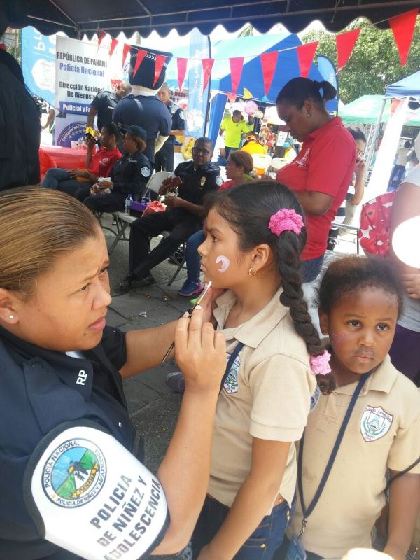 La Policía Nacional se hizo presente con un divertido stand en la Feria del “Día del Niño y la Niña”, que organiza el Despacho de la Primera Dama junto a la Alcaldía de Panamá en el Centro de Convenciones de Amador (antiguo Figali). Un ambiente ameno fue lo que disfrutaron los pequeños acompañados por sus padres, en esta celebración que inició este viernes 15 de julio y reunió a más de 40 instituciones gubernamentales y empresas privadas. Los niños y niñas pintaron sus caritas con simpáticos diseños, recibieron golosinas, compartieron junto a “Polito” e interactuaron con miembros de la Policía Nacional, quienes con material didáctico los orientaron sobre medidas de prevención. Esta actividad continuará este sábado 16 en un horario de 8:00 a.m. a 8:00 p.m. concluyendo este domingo 17 julio en el Parque Recreativo Omar, de 10:00 a.m. a 6:00 p.m. Durante evento, que es gratuito, se han organizado actividades artísticas, promoviendo el cuidado del medio ambiente, incentivando el deporte y la tecnología.
