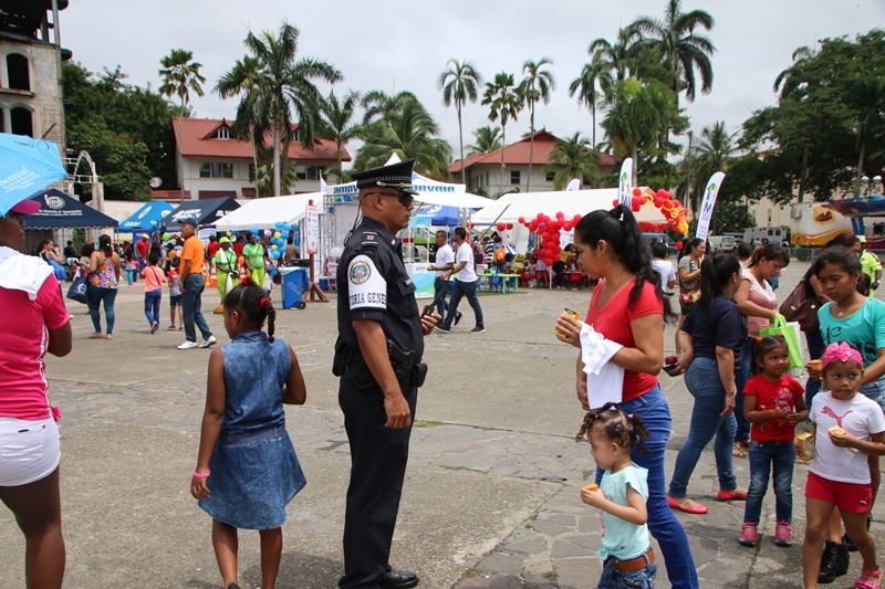 Todo un éxito fue la participación de la Policía Nacional este sábado 16 de julio de 2016, en el Festival del “Día del Niño y la Niña”, en el Centro de Convenciones de Amador, donde el stand de la institución fue muy visitado. Golosinas, hot dog y juegos didácticos fueron parte de las atracciones del stand de la Policía Nacional, que por segundo día consecutivo recibió a los pequeños junto a sus familiares, en esta actividad organizada por el Despacho de la Primera Dama y la Alcaldía de Panamá “Polito” les dio la bienvenida, invitándolos a disfrutar un rato muy divertido lleno de sorpresas, mientras algunos aprovecharon para tomarse fotos con este carismático personaje de la Policía Nacional. El festival que es gratuito, inició este viernes 15 y culminará este domingo 17 julio en el Parque Recreativo Omar.