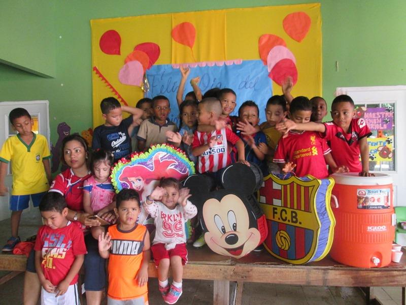 Los docentes del Centro de Orientación Infantil COIF “Los Pininos Nueva Generación” en La Chorreara agasajaron a los niños y niñas, en conmemoración del Día del Niño. Los niños disfrutaron de una tarde de talento donde imitaron a sus artistas favoritos, jugaron los juegos de la media y lentes locos, reventaron piñata y recibieron obsequios. La actividad no solamente la disfrutaron los niños sino también sus maestros, quienes dejaron salir ese niño que llevamos dentro para compartir. Como cierre del programa se desarrolló un juego de futbol entre los maestros, los niños disfrutaban haciendo la barra a su equipo favorito y organizando un equipo de porristas. |
