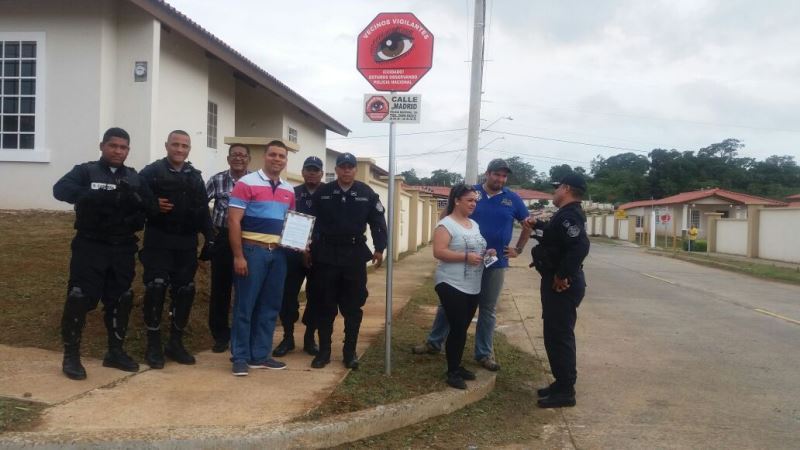 Residentes de Calle Paseo Monte Limar en el Corregimiento de Barrio Colon, en La Chorrera, se sumaron a los programas preventivos de la Policía Nacional. Los residentes de estas nuevas barriadas son personas que acaban de adquirir sus viviendas, por lo que se organizan para tomar todas las medidas preventivas de seguridad y es por ello que se organizan para poner en práctica el programa de Vecinos Vigilantes, sellando un compromiso con la Policía Nacional. Con este nuevo programa se ven 14 familias beneficiadas en calle Madrid de Paseo Monte Limar. En el acto de inauguración del programa el Subcomisionado Virgilio Lezcano en representación del jefe de la zona, Comisionado Gilberto Samaniego, instó a los nuevos miembros del programa a mantener la comunicación con las unidades policiales y así el programa tenga éxitos. Los coordinadores del programa señor Gilberto valencia y la joven Mari Carmen León, agradecieron a las unidades policiales por su dedicación y por el tiempo que se han tomado para capacitarlos e impulsar el programa. Una vez culminada la parte protocolar se procedió a develar el letrero de Vecinos Vigilantes en compañía de la murga de nuestra Institución. |