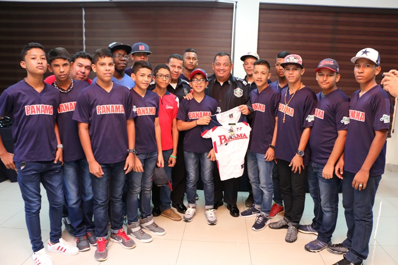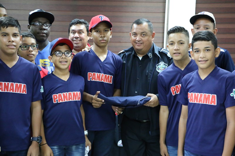 La selección juvenil de béisbol (Liga Pony- Sub 13) de la Policía Nacional representará a Panamá en el próximo Torneo Mundial de Béisbol Infantil que se desarrollará del 29 de julio al 1 de agosto en Los Ángeles California, de los Estados Unidos de América. En este torneo participan un promedio de 8 diversos países, correspondiendo a la república de Panamá, representar también a la zona del Caribe. Correspondió al Director de la Policía Nacional, Omar Ariel Pinzón Marín y el Subdirector General, Javier Castillo realizar la entrega de los uniformes completos que incluyen cascos, gorras, suéteres, pantalones, guantes, bates y manillas entre otros implementos que utilizarán los noveles deportistas panameños. La delegación que encabeza el Sub Comisionado Julio Aizpurúa estará integrada además por entrenadores y 15 niños de 13 años de edad, provenientes de diversos sectores de la geografía nacional a quienes incluso se les hizo un recorrido por un moderno centro comercial de la localidad, puestos que muchos de ellos es primera vez que vienen a la ciudad capital. Previamente la Licenciada Yanelis Garibaldi, Psicóloga del Departamento de Bienestar Familiar y Policial, les dictó una charla de motivación con miras a elevar su estado de ánimo para la próxima competencia en la cual estuvieron presentes también los padres de los niños. El Director del Equipo Humberto Sánchez reveló que el equipo tiene 6 meses de estar entrenando e incluso hubo una gira de fogueo a Nicaragua. Además hay 3 peloteros que fueron el año pasado a Puerto Rico y que repiten este año, siendo ellos el Short Stop Jean Arnaez; el Tercera Base Ricardo Álvarez y el lanzador Cristhian Olave quien además juega también de filder y receptor. El primer partido que jugará esta selección de Panamá será contra Japón que a su vez representará a Asia, donde el lanzador abridor por nuestro país lo será Erick Saldaña. Este equipo cuenta con 4 chiricanos, 2 veragüense, un herrerano, 2 coclesanos, 3 jugadores de Panamá Centro; un jugador de Panamá Este y un colonense. |
